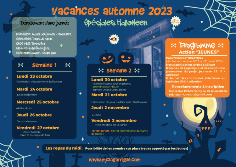 Voici le programme "Jeunesse" pour les vacances scolaires d'Automne pouvant être modulé en cours selon les envies des jeunes présents.