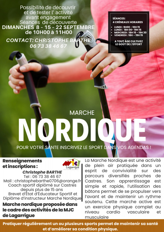 Christophe Barthe vous propose, comme l'année dernière, d'effectuer des séances de présentation et d'initiation à l'activité Marche Nordique sur 3 dimanches: