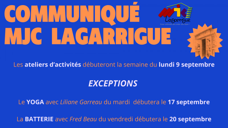 Les ateliers d’activités débuteront la semaine du lundi 9 septembre 2024