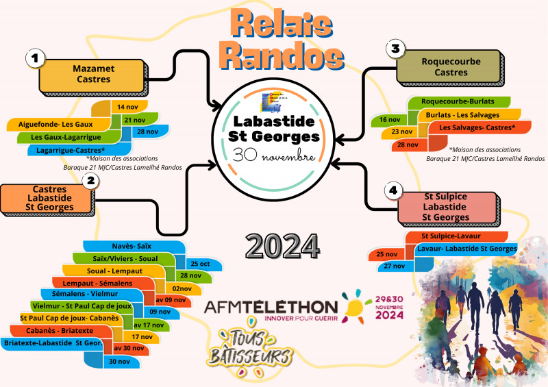 Cette année l’arrivée de ce relais aura lieu à Labastide St Georges au cours d’une après-midi festive et conviviale le samedi 30 novembre 2024.