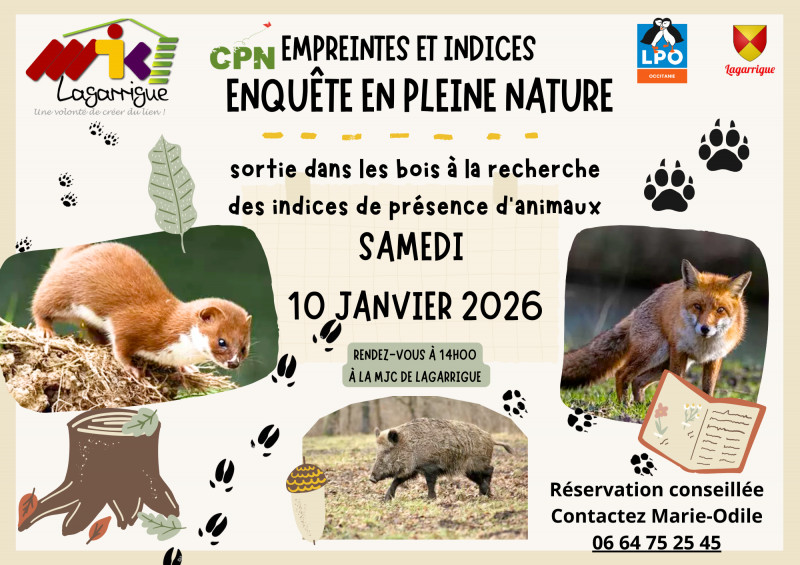 Atelier CPN du 10 janvier: Empreintes et indices; enquête en pleine nature