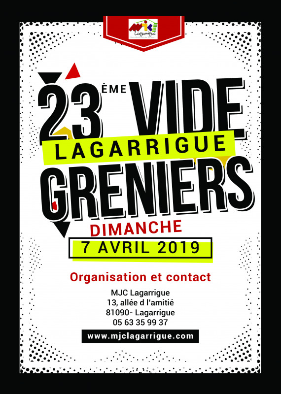Note: Les inscriptions pour le vide-greniers du dimanche 7 avril 2019 à Lagarrigue, seront ouvertes à partir du 18 FEVRIER à 9h00 pour les habitants de Lagarrigue situés sur le circuit du vide-greniers, puis du 19 FEVRIER à 9h00 pour les habitants de la Vallée de la Durenque (Lagarrigue, Noailhac et Valdurenque) puis ouvertes à tous à partir du date 20 FEVRIER à 9h00 .
