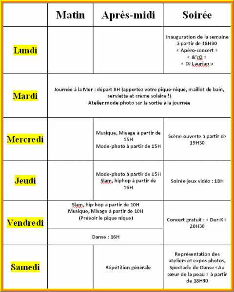 o Soyez organisateur et acteur d’un concert qui aura lieu en fin de semaine !