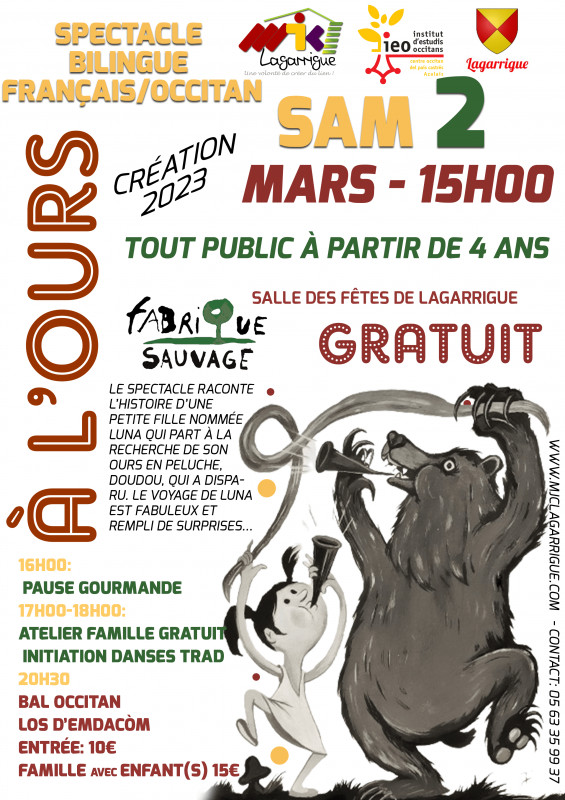 Cette journée occitane organisée conjointement par l'IEO Castres-COPC /MJC Lagarrigue débutera par un spectacle GRATUIT tout public à partir de 4 ans en occitan.