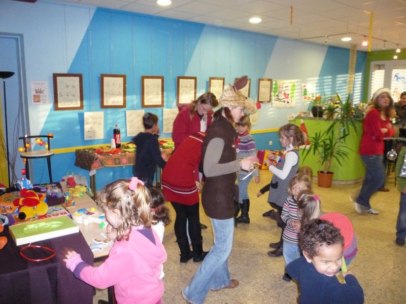 Avant que le père Noël ne passe dans leurs maisons, les parents sont venus troquer d' anciens jouets et livres pour enfants inutilisés contre des décorations et accessoires de fêtes réalisés par les enfants. Les jouets, jeux et livres échangés et récoltés sont destinés à être utilisés au centre de loisirs, pour compléter les jeux et le matériel mis à disposition des enfants qui fréquentent le centre de loisirs. Cliquer sur les photos pour agrandir,. Une fois l'agrandissement ouvert, si vous voulez enregistrer la photo, faites clic droit de la souris et faites enregistrer images sous un répertoire de votre choix.