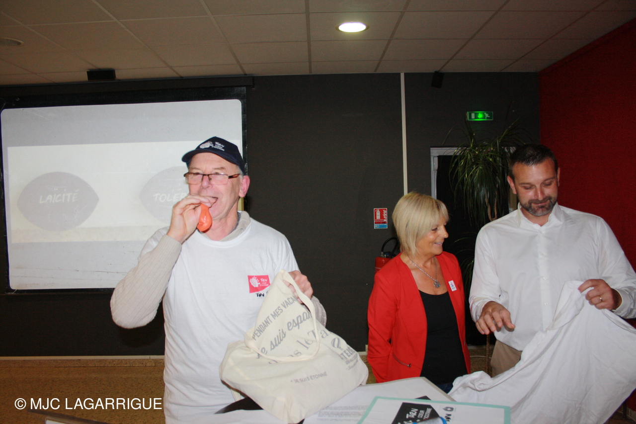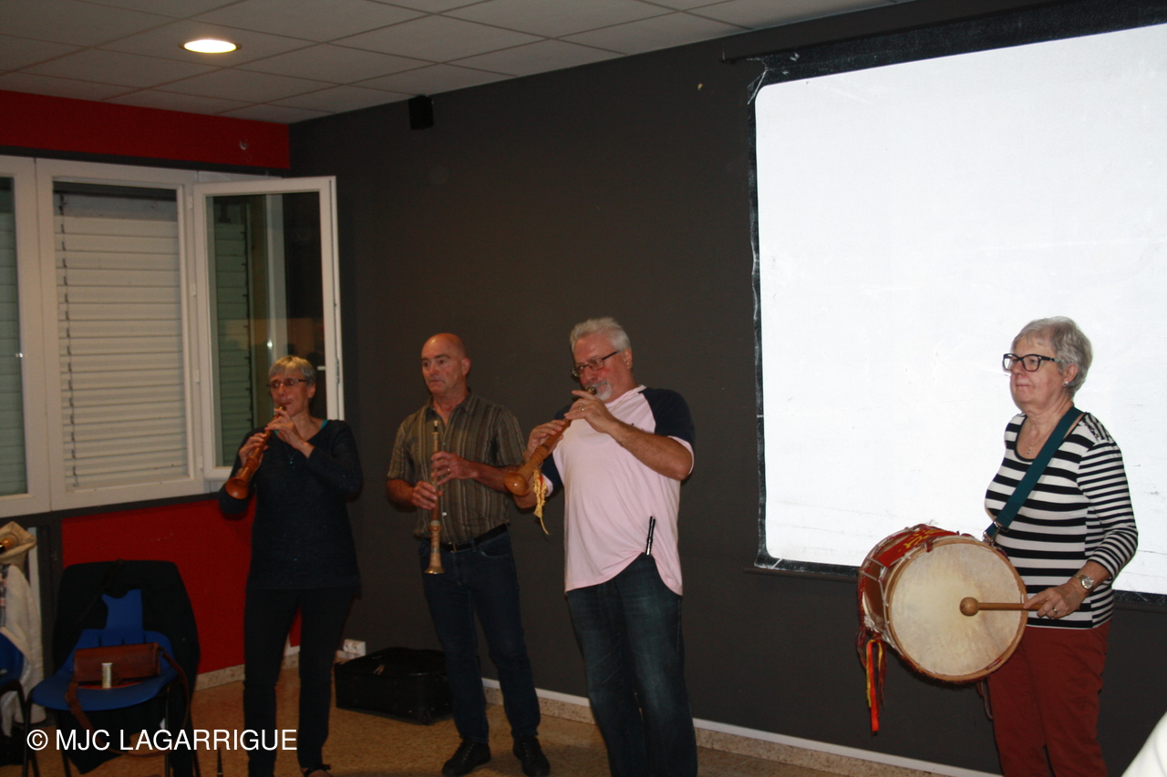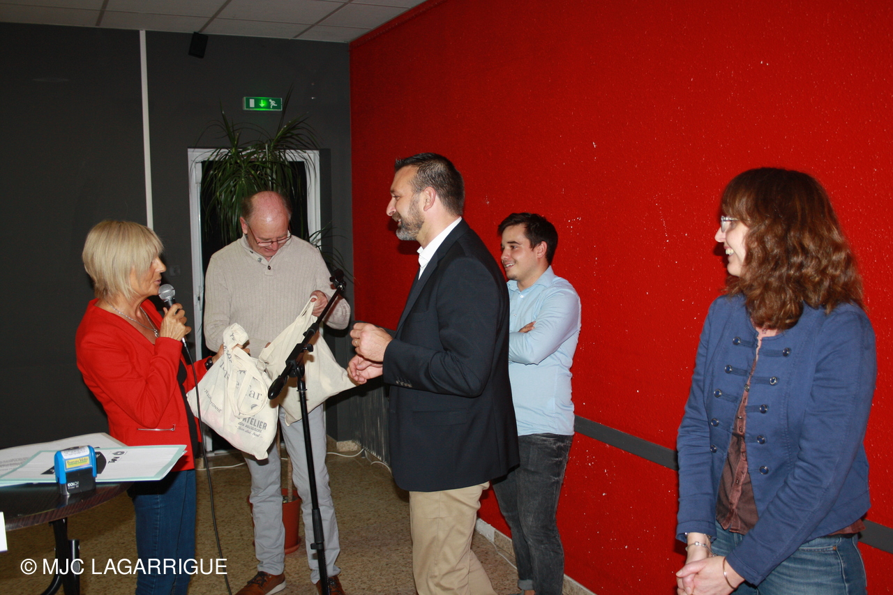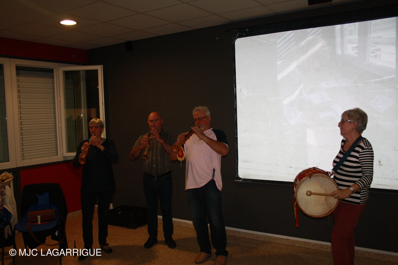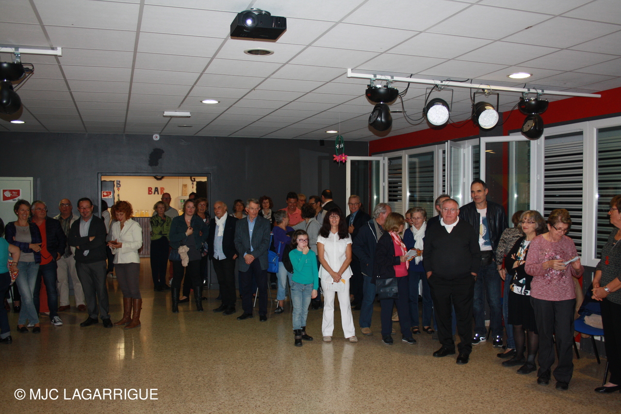 Discours de Yves Guminski (président MJC Lagarrigue), Solange Pistre (la nouvelle présidente du Centre Occitan du Pays Castrais), Vincent Colom (maire de Lagarrigue) et pour conclure avant les signature Cathy Rabou, représentant le Président du Conseil Départemental du Tarn.