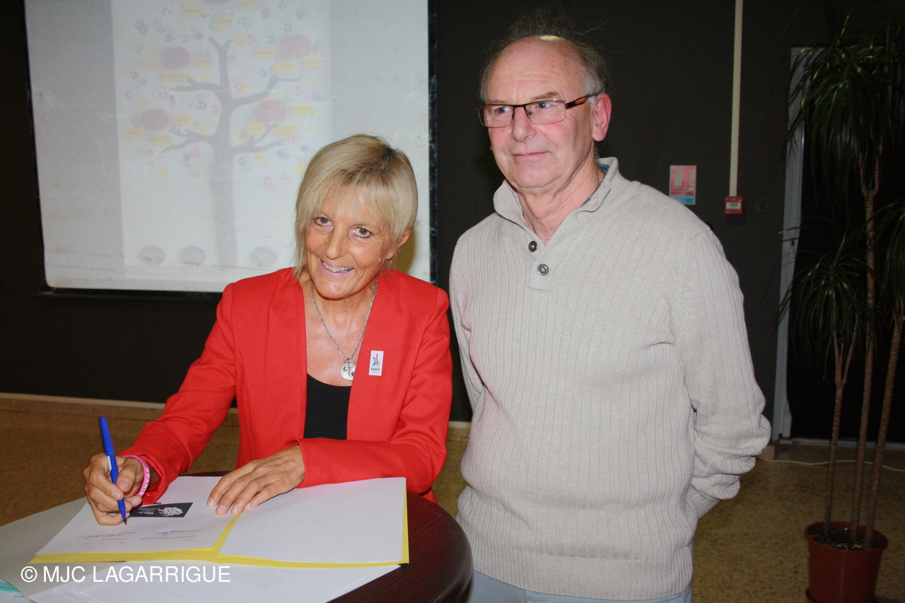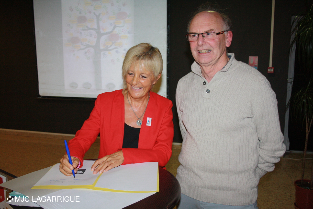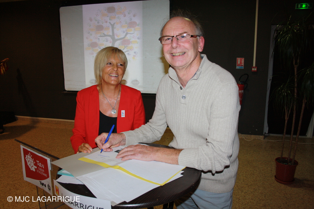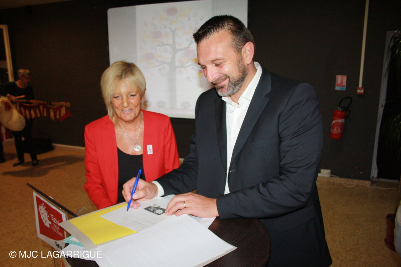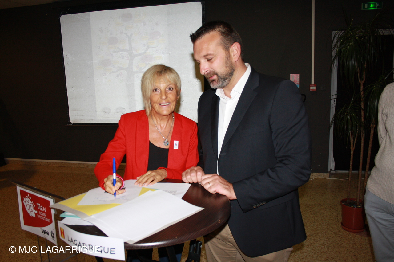 Signature de la convention Tarn coeur Occitanie entre le département, La municipalité de Lagarrigue et La MJC de Lagarrigue.