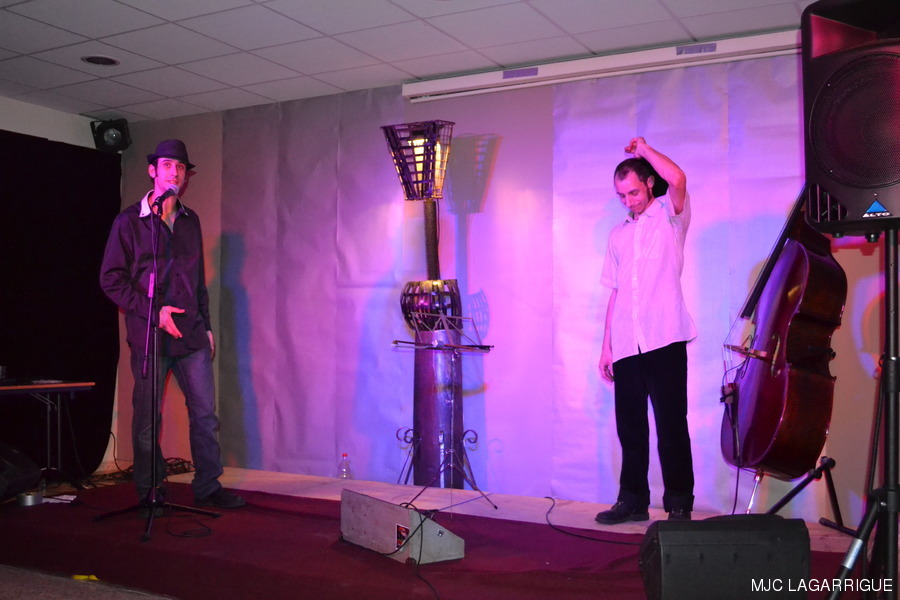 Duo Tchatche et contrebasse : "Le correspondant local ne répond plus" Textes et chant : Jérôme Pinel Contrebasse : Manuel Mouret. Cliquer sur les photos pour agrandir,. Une fois l'agrandissement ouvert, si vous voulez enregistrer la photo, faites clic droit de la souris et faites enregistrer images sous un répertoire de votre choix. Vous pouvez aussi faire défiler les photos sous forme de diaporama après agrandissement.