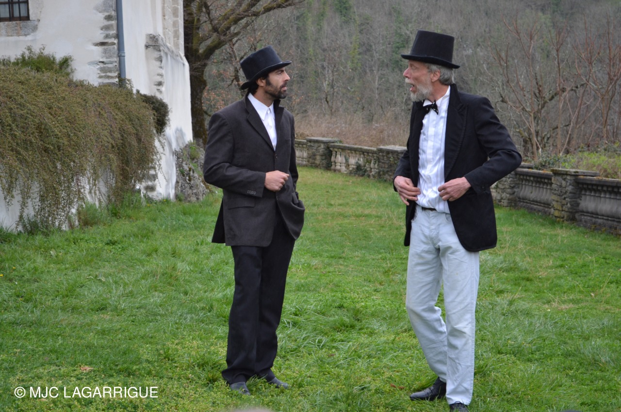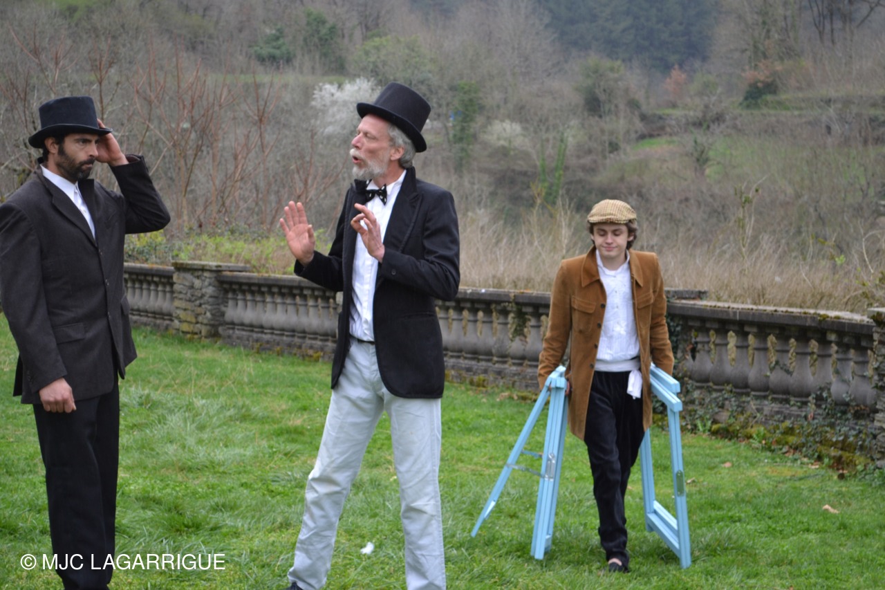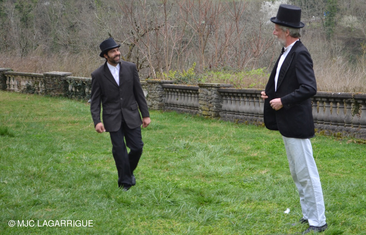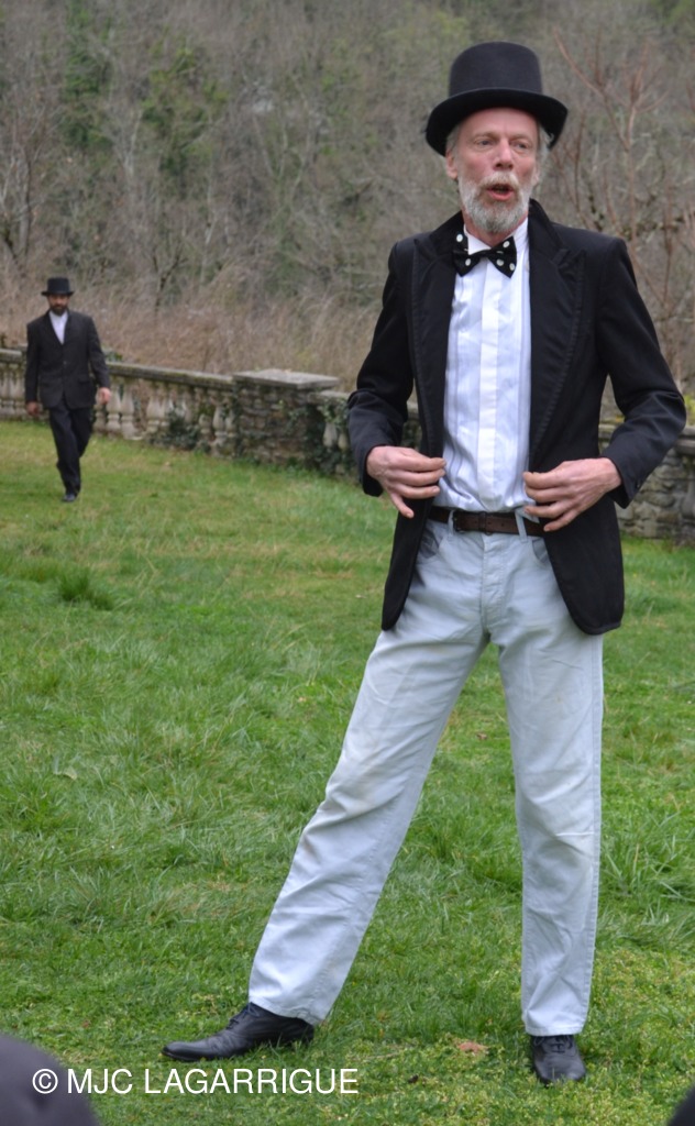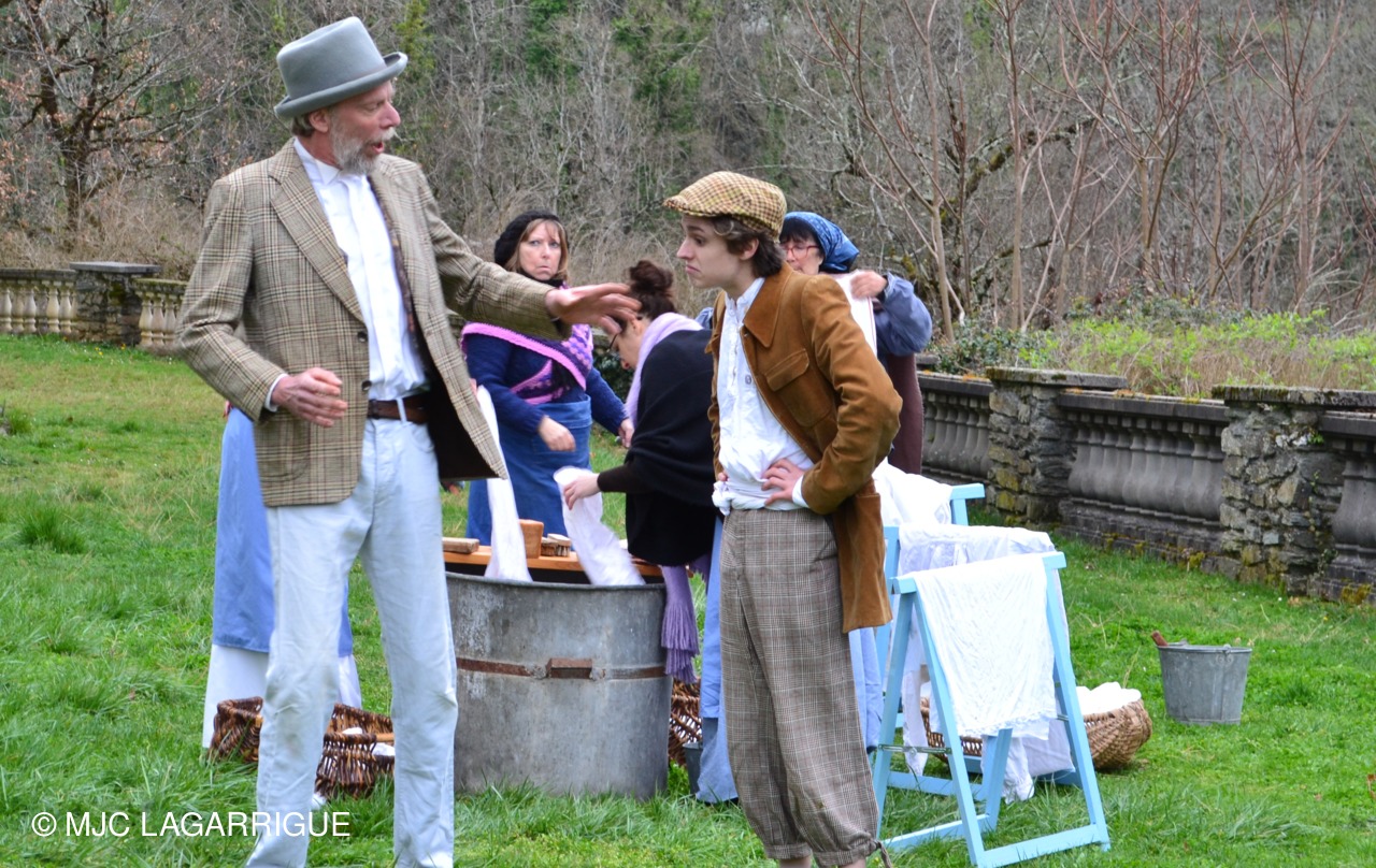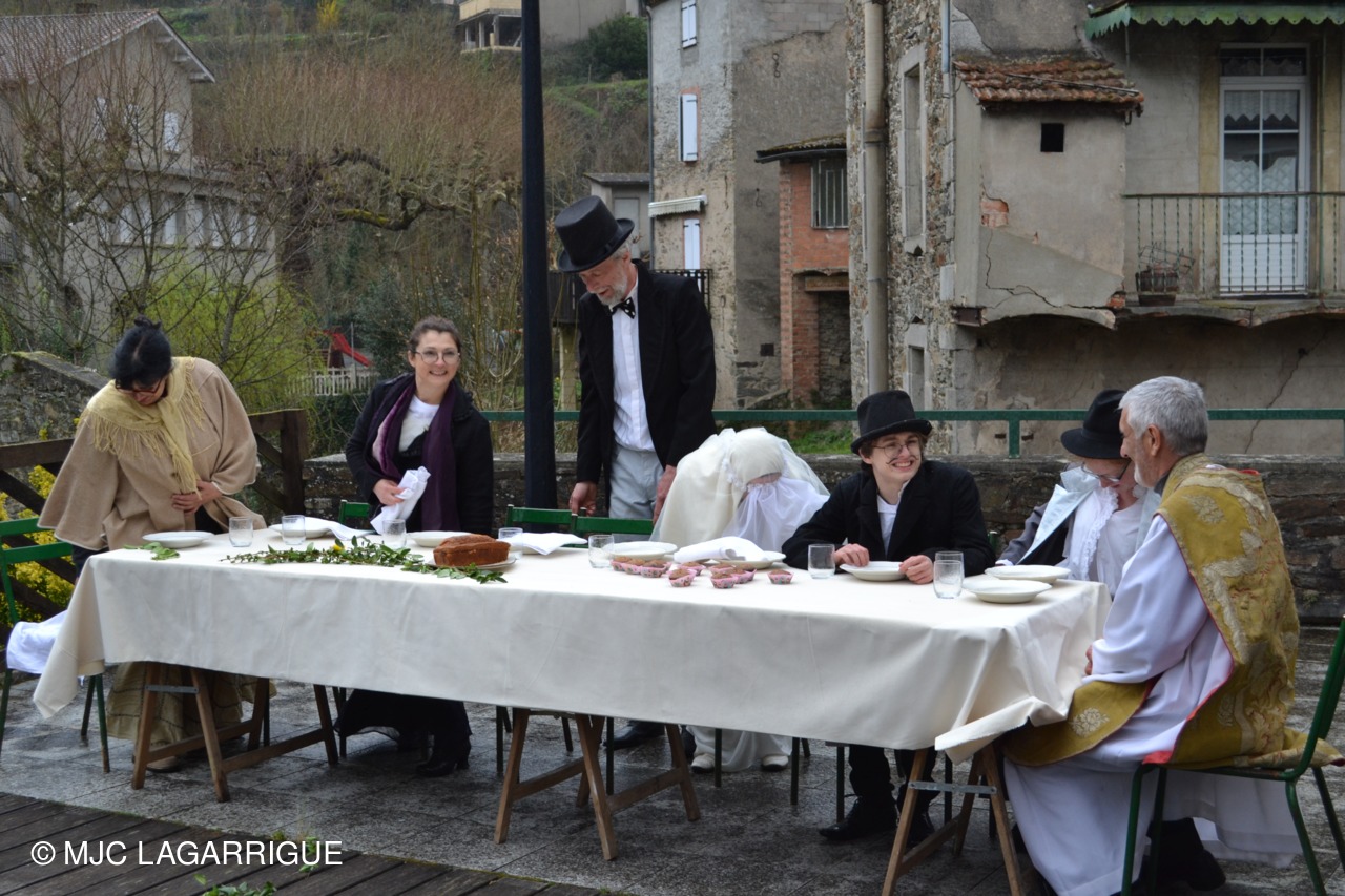 Suite à cette pause bien méritée, appréciée par tous, malgré des conditions météorologiques qui se sont légèrement dégradées avec l’apparition d’un léger crachin, le théâtre de l’Isatis de Lautrec nous a ravis en interprétant « Meunier veut marier sa fille » en extérieur dans le village.