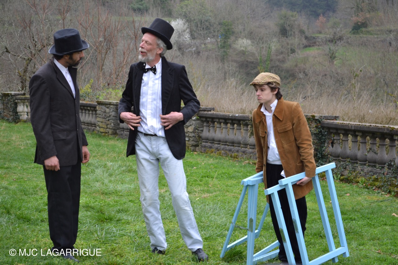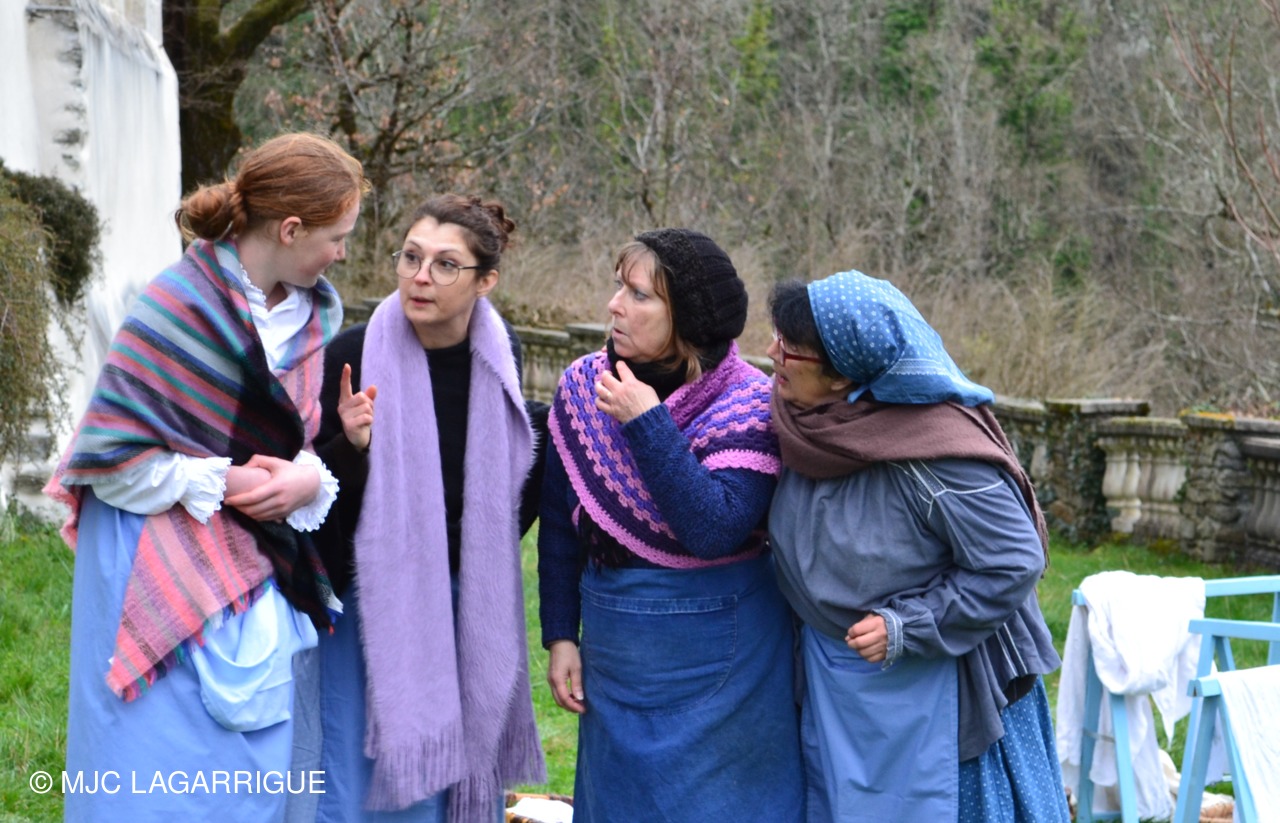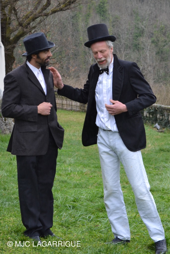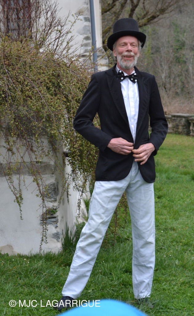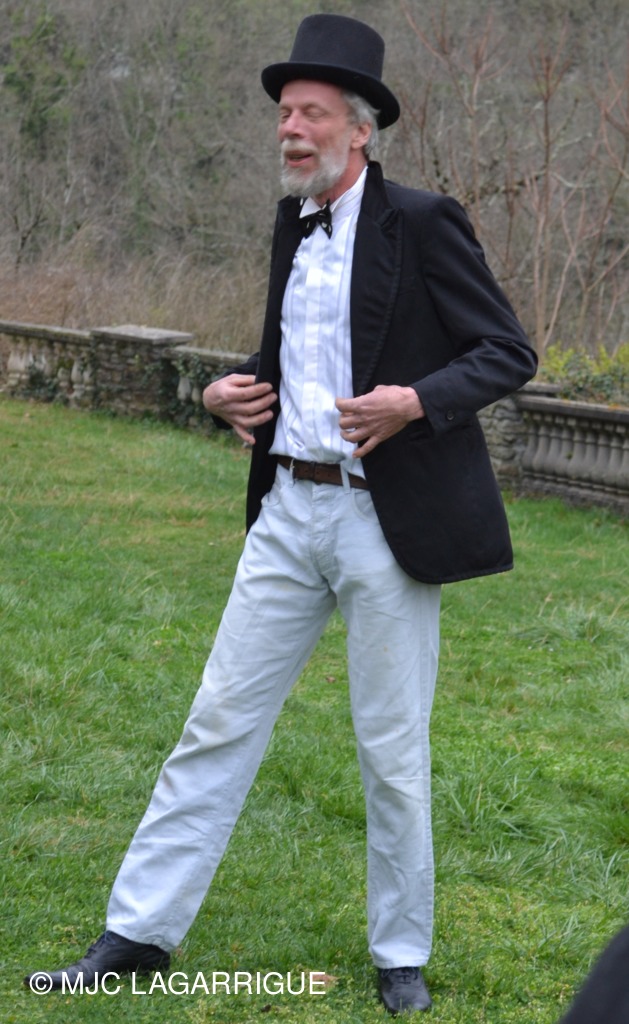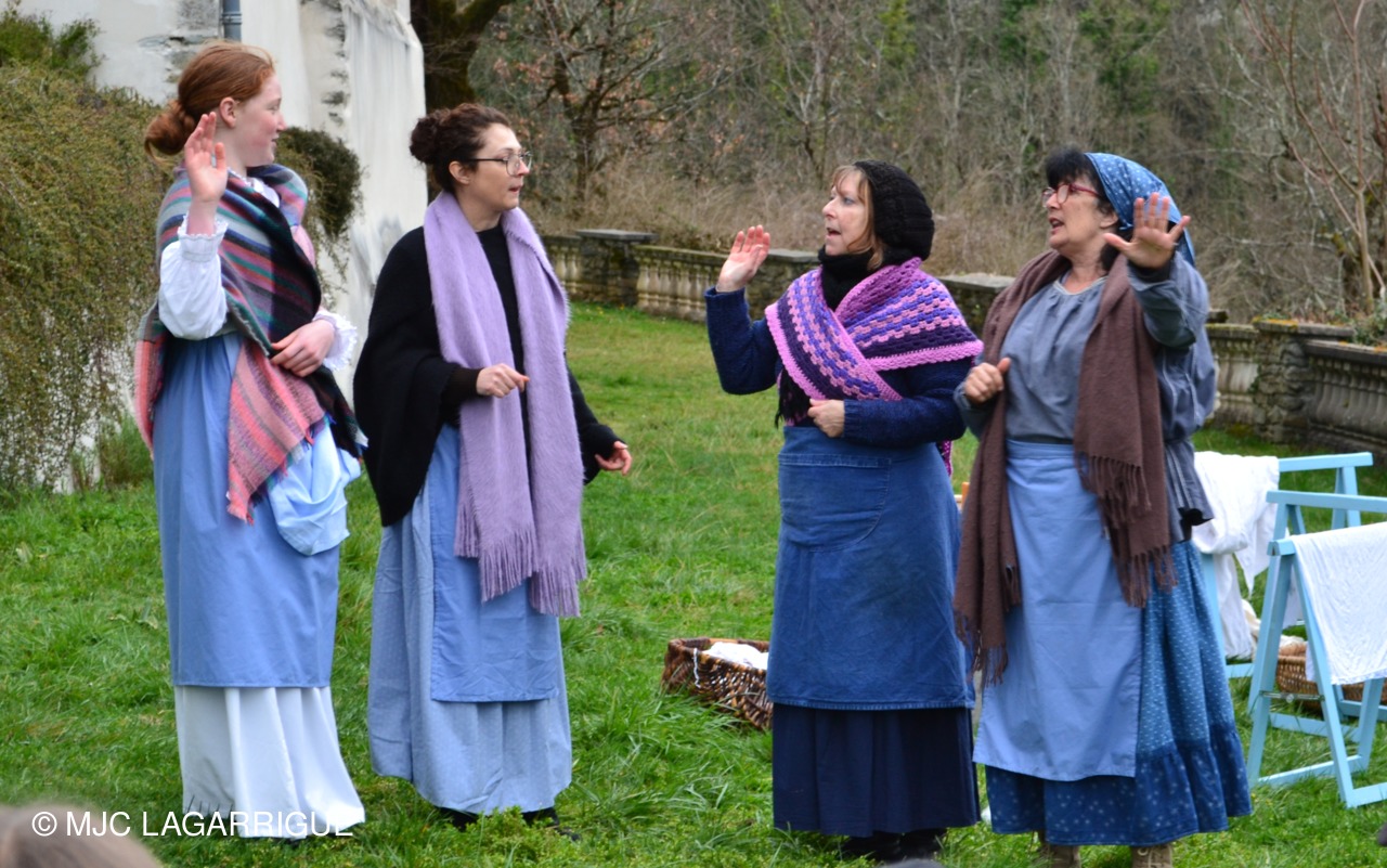 Suite à cette pause bien méritée, appréciée par tous, malgré des conditions météorologiques qui se sont légèrement dégradées avec l’apparition d’un léger crachin, le théâtre de l’Isatis de Lautrec nous a ravis en interprétant « Meunier veut marier sa fille » en extérieur dans le village.