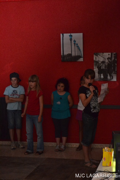 Voici quelques photos du spectacle proposé par les jeunes de l'accueil de loisirs de juillet 2011 et présenté par Florence (Sosie de Paris Hilton) RÉCUPÉRATION DES PHOTOS 1. Positionnez le pointeur de la souris sur la photo choisie et cliquer dessus pour agrandir. 2. Activez le bouton droit de la souris, un menu contextuel s'ouvre. 3. Activez dans ce menu le choix "Save Image As..." ou "Enregistrer l'image sous..." 4. Une fenêtre s'ouvre et vous y indiquerez le lecteur (disque dur, clé USB) et le répertoire où vous souhaitez que la photo soit enregistrée. Vous pouvez aussi faire défiler les photos sous forme de diaporama après agrandissement.