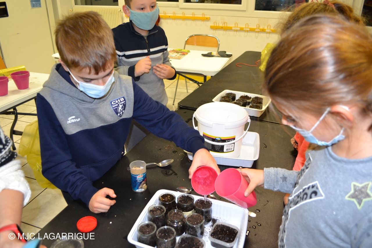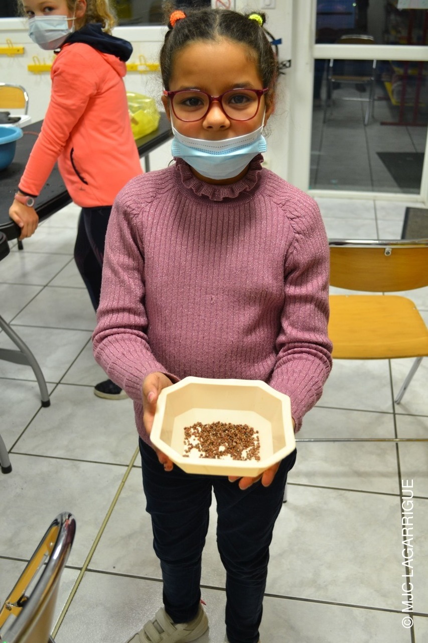Vendredi 26 novembre 2021, c'était préparation de semis à partir des graines récupérées de la récolte précédente pour nos petit.e.s jardiniers en herbe de l'atelier Pot'agé animé par Delphine.