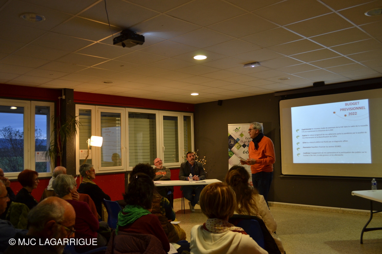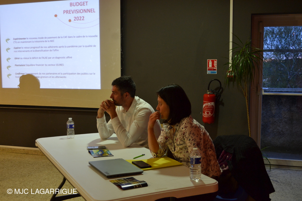 Le président Yves Guminski , a tout d’abord lu son rapport moral puis Pascal avec les animateurs enfance et des clubs ont animé la présentation du rapport d’activités 2021. Le bilan financier a été présenté par Mélanie Armengaud (Irisia Expertise comptable), la nouvelle experte comptable choisie par la MJC et qui se solde par un résultat excédentaire de l’ordre de 11000€ mais a relativisé vue la conjoncture de l’année 2021.. Ce bilan financier a été valide par le commissaire aux comptes Mr Julien Maza (cabinet 2C Audit). Le rapport d’orientation 2022 a été présenté par le président suivi du budget prévisionnel 2022 expliqué par le directeur..