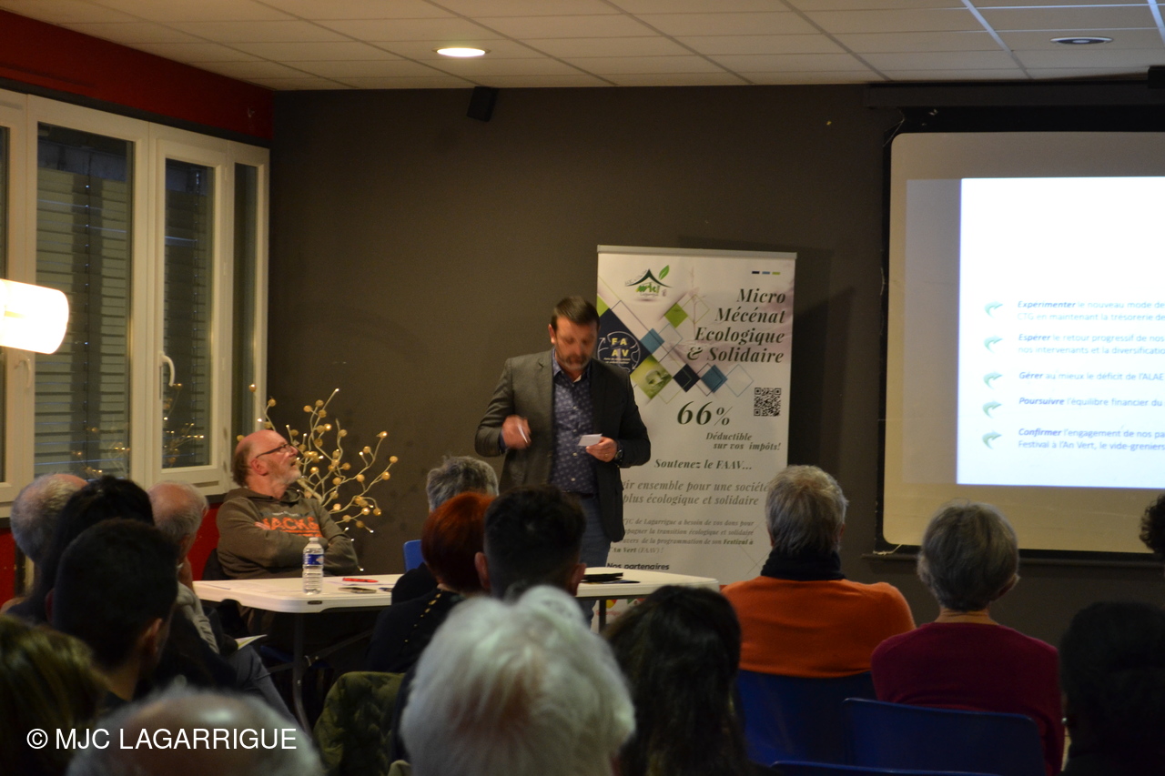 Mr Le Maire de Lagarrigue, Vincent Colom a ensuite pris la parole pour remercier tous les acteurs de notre structure bénévoles comme salariés et a tenu à nous signaler son inconditionnel soutien et celui du conseil municipal notamment dans la future réorganisation du territoire au niveau de l’enfance et jeunesse qui rique dans un premier de mettre à mal les finances de la MJC.