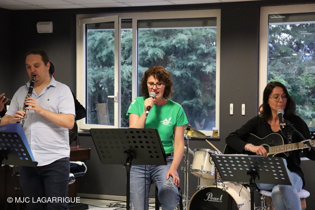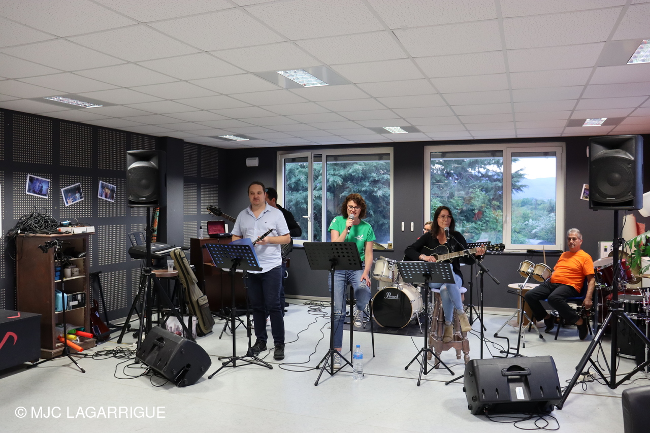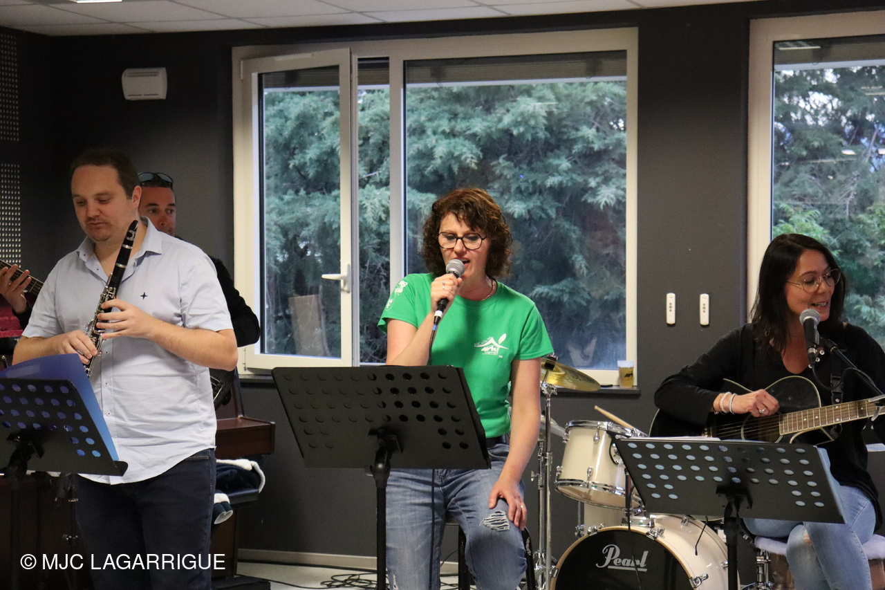 Belle prestation musicale et chantée de l’atelier musique adultes " HIGH LEVEL" de la MJC de Lagarrigue emmené par Sébastien Vareilles intervenant Musique et Guitare de la MJC