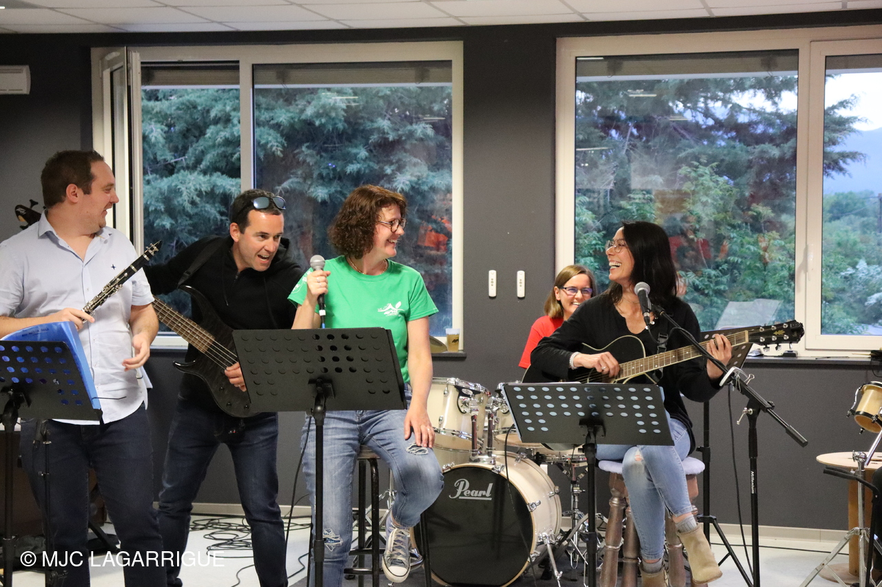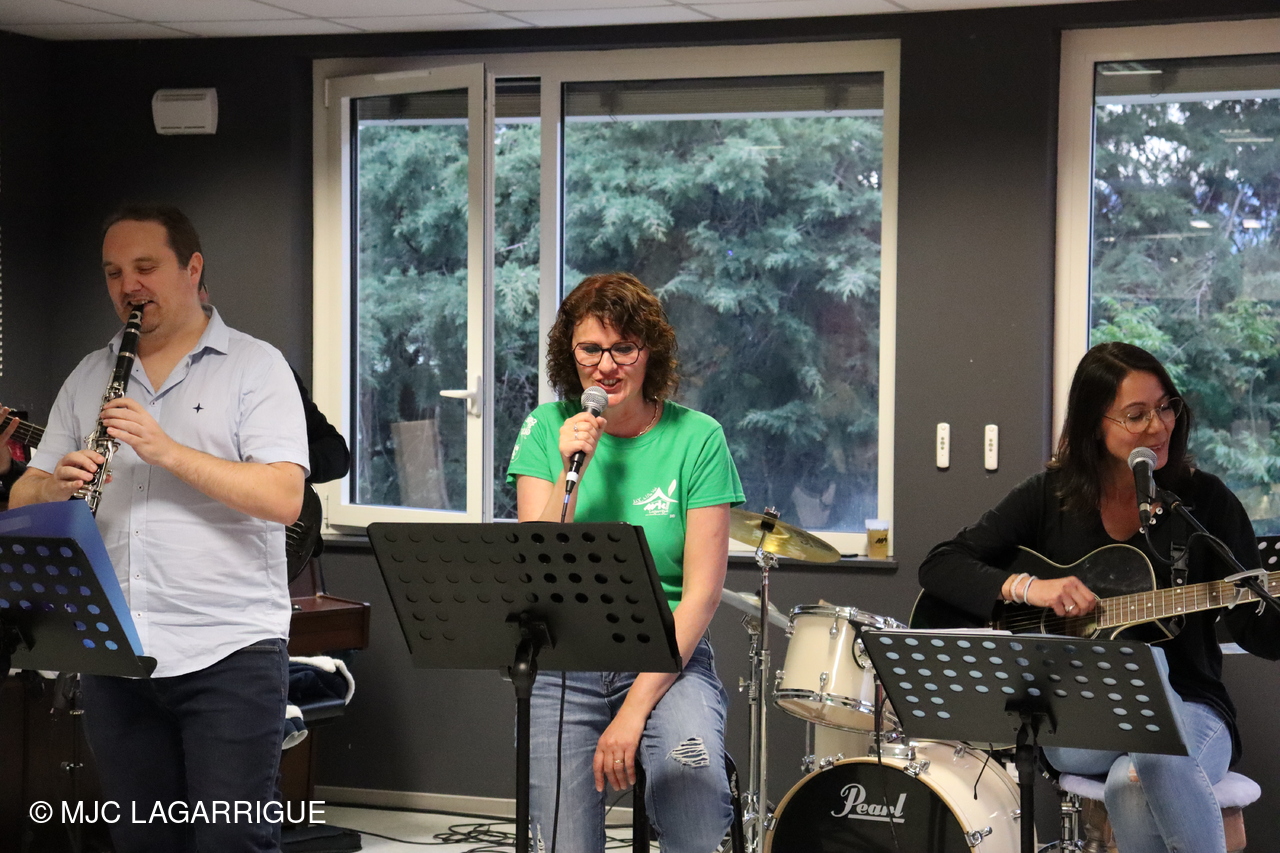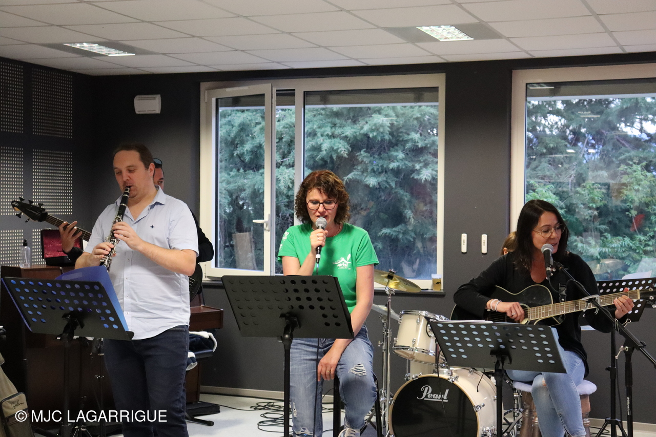 Belle prestation musicale et chantée de l’atelier musique adultes " HIGH LEVEL" de la MJC de Lagarrigue emmené par Sébastien Vareilles intervenant Musique et Guitare de la MJC