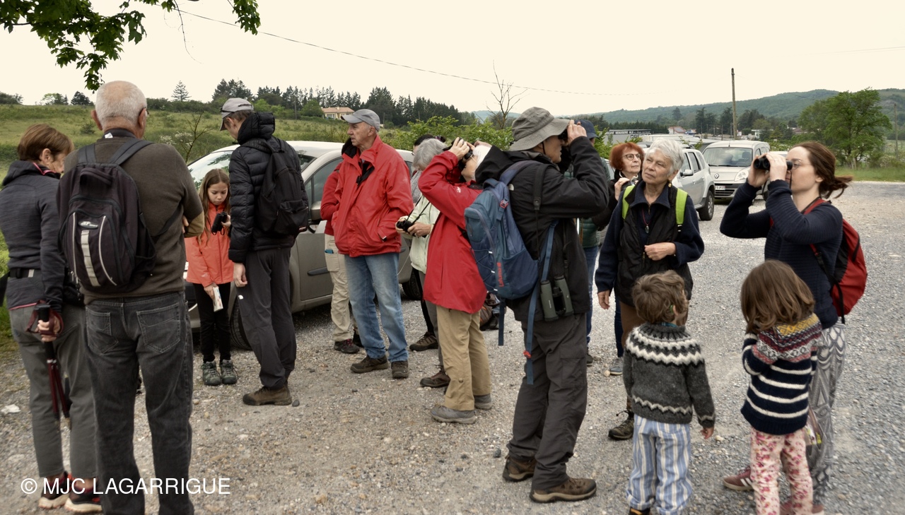 Départ le Causse à Valdurenque pour une virée de 4heures (environ 5 km) où les participants ont été accueillis par le chant du rossignol, de la fauvette à tête noire,  de la fauvette mélanocéphale … de l’alouette lulu, du  pouillot véloce et du   pouillot de Bonelli …. 12 oiseaux différents entendus qui se cachent dans le feuillage.