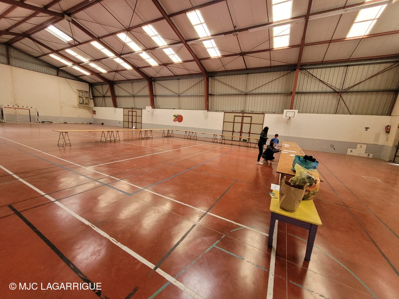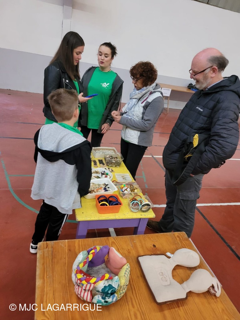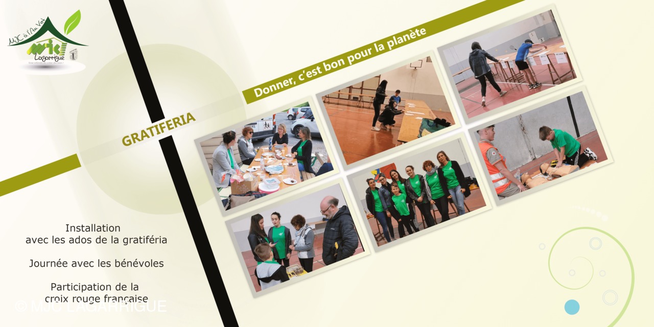 Voilà quelques photos de l'installation des stands pour la gratiféria organisé au gymnase de Noailhac du Festival à l'an vert par les ados avec Julie, l'animatrice action jeunesse ainsi que les photos des bénévoles et de la participation de la croix rouge française.