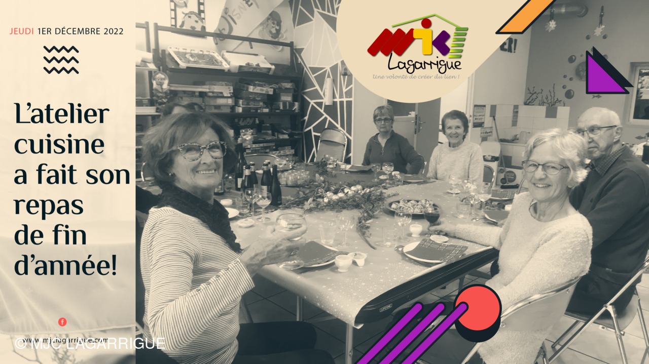 Nos ami.e.s de l'atelier cuisine de la MJC ont préparé et partagé leur repas de fin d'année 2022. Ce moment convivial qui a démarré dès 9h30, s'est prolongé dans la bonne humeur jusqu'à 16h00 environ. Ils ont concocté et dégusté en autres: