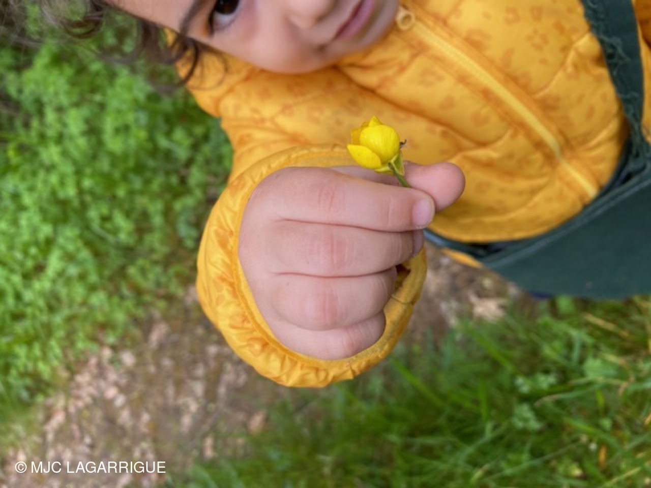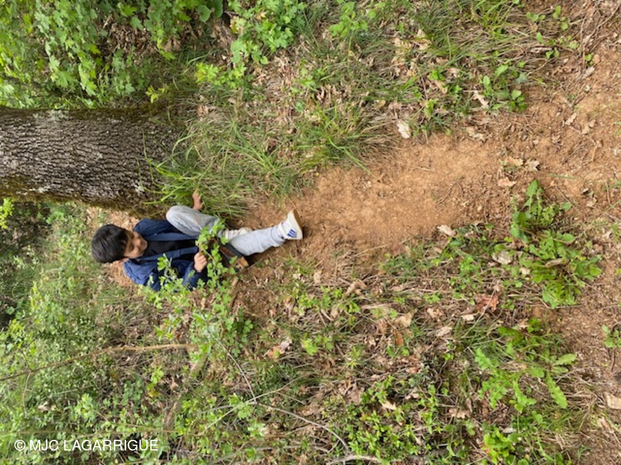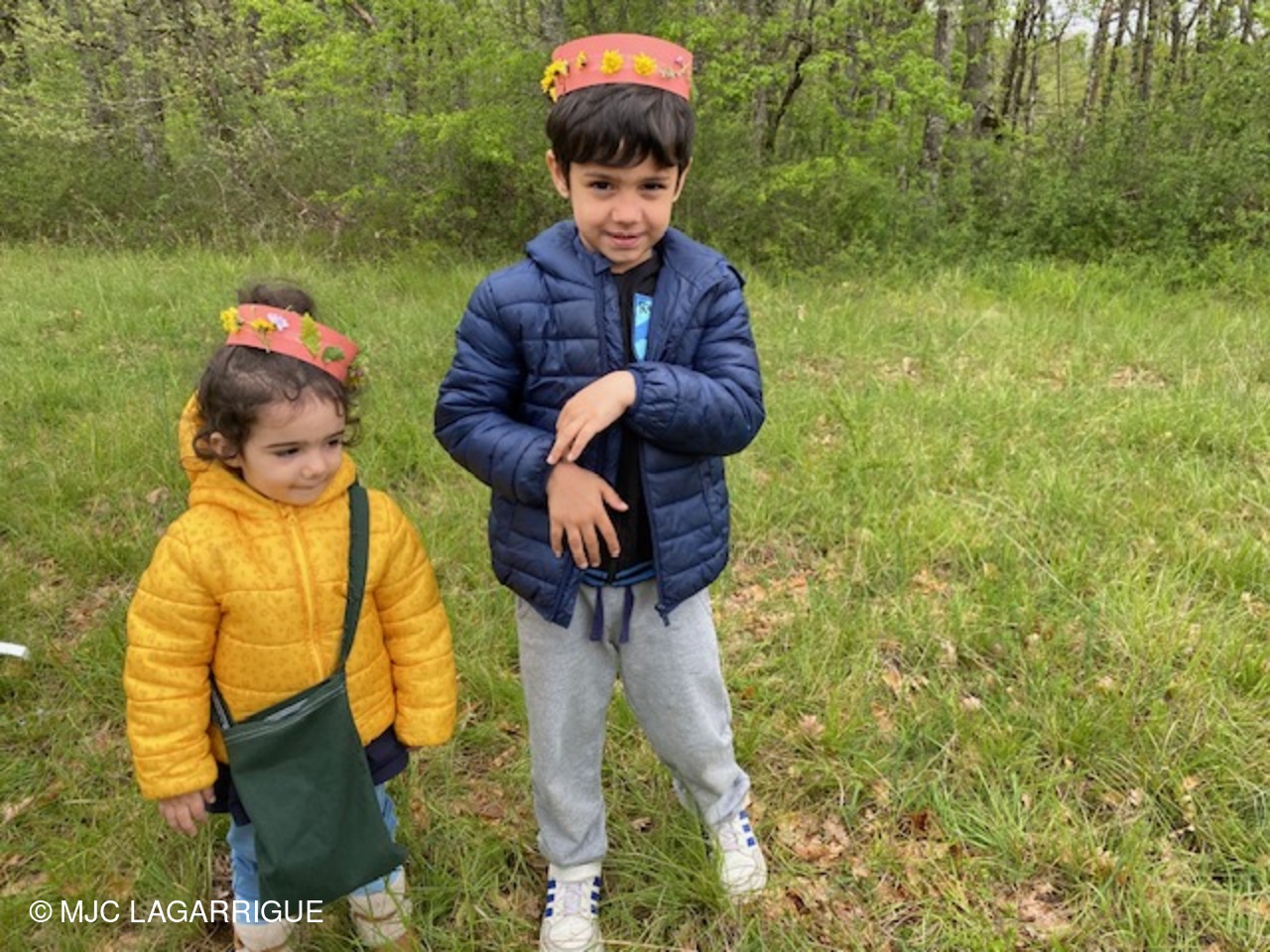 Une mamie était présente avec ses deux petits enfants et un petit tour a été tout de même fait dans les bois : plaisir de trouver des bébés sauterelles, des plantes qui piquent… , plaisir de descendre en glissant un passage pendu fait par les animaux… et aussi de ramasser des éléments de nature pour se faire une belle couronne.