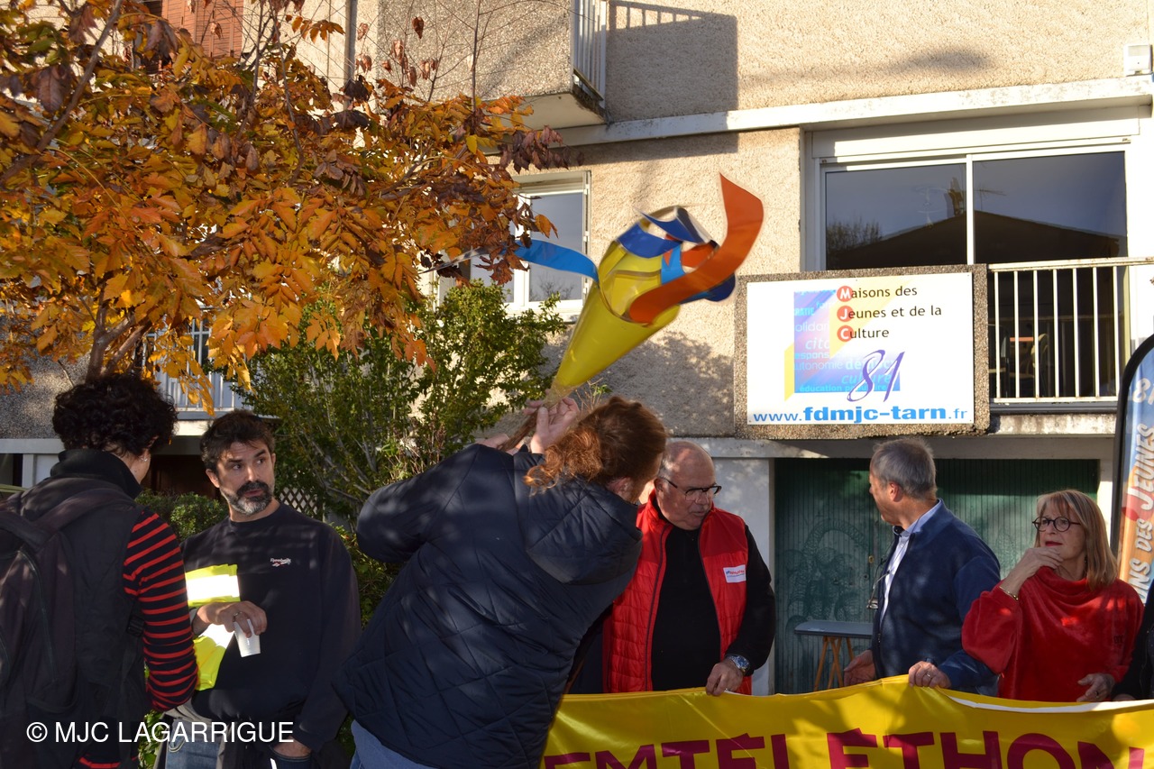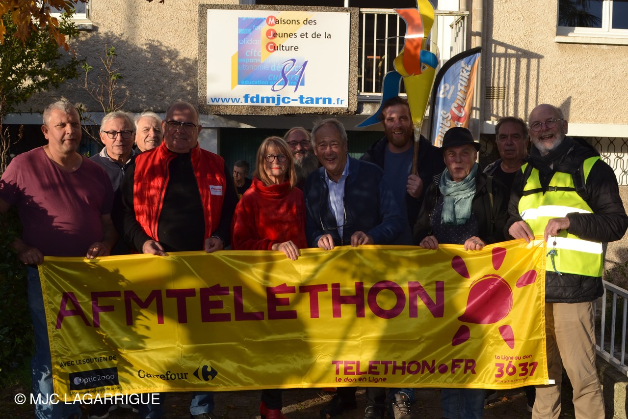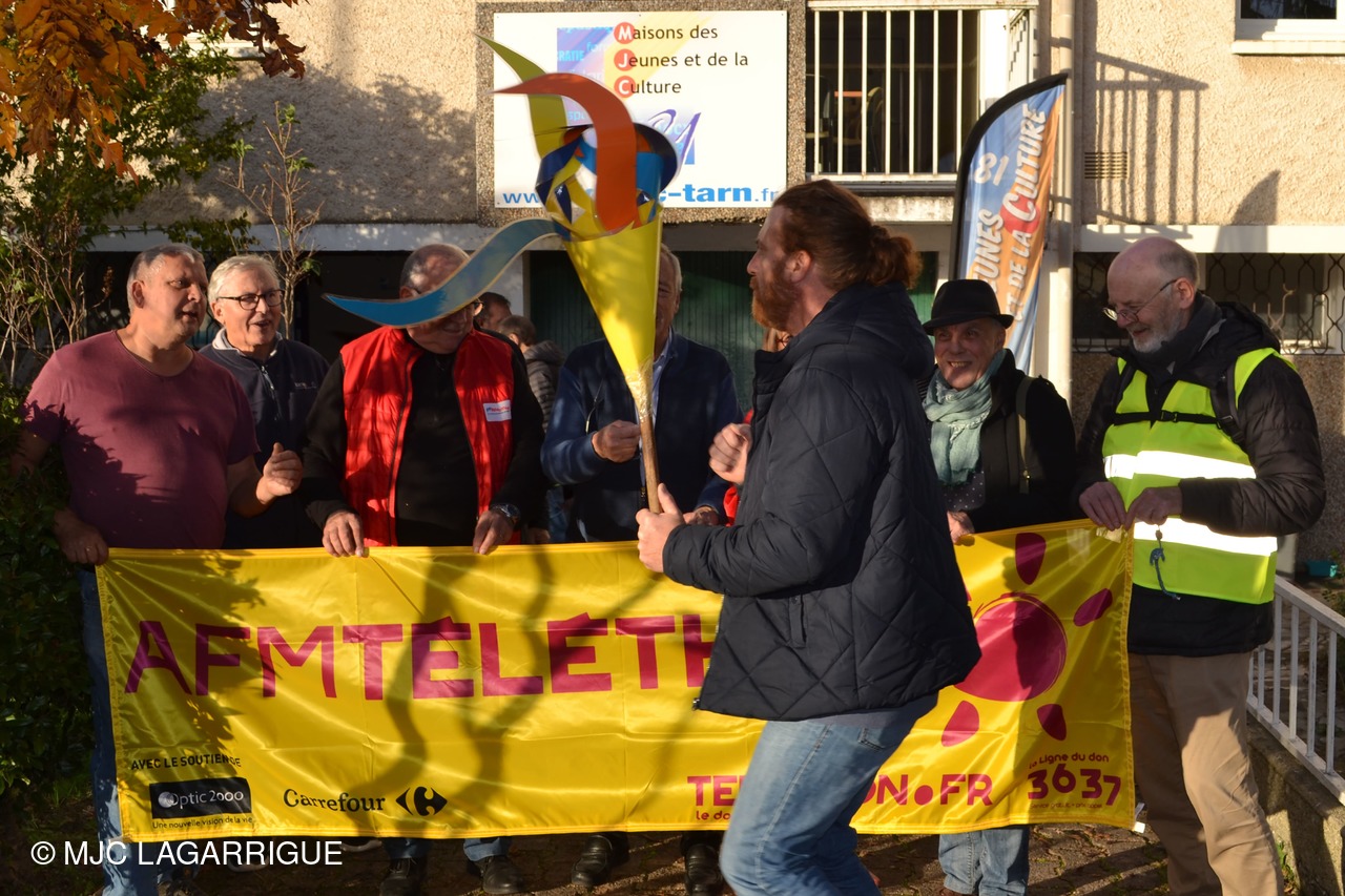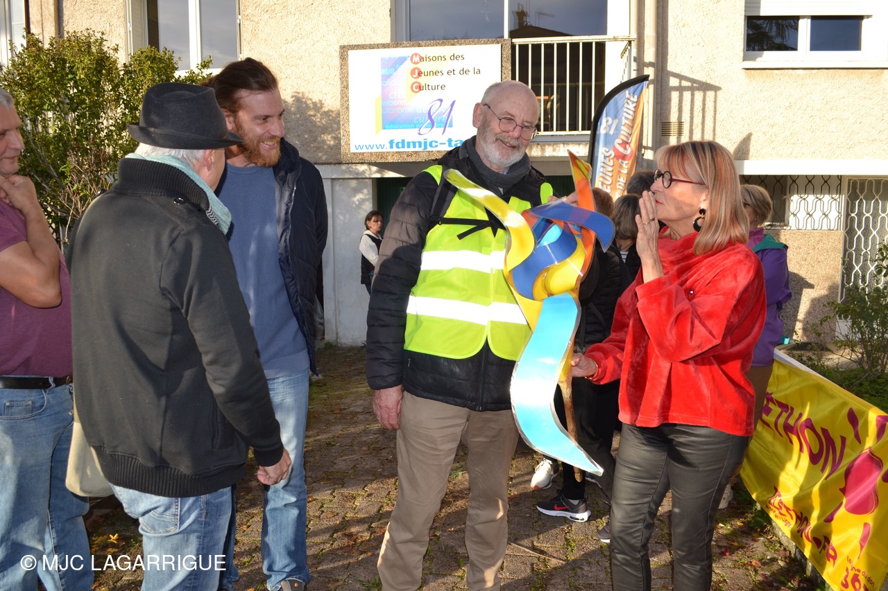 C'est aujourd'hui que la MJC de Lagarrigue a passé le flambeau des relais rando au profit du téléthon à Castres Lameilhée Rando et MJC baraque 21 dans les locaux de la FDMJC 81 rue Goya à Castres.