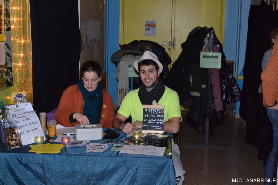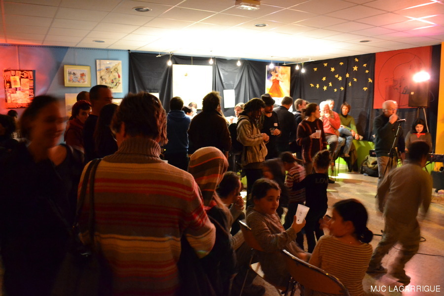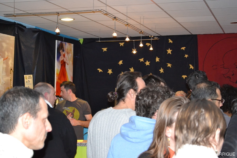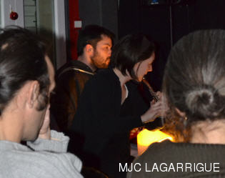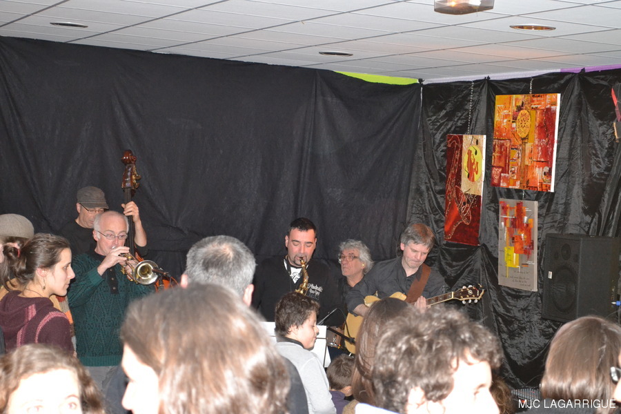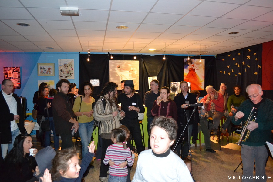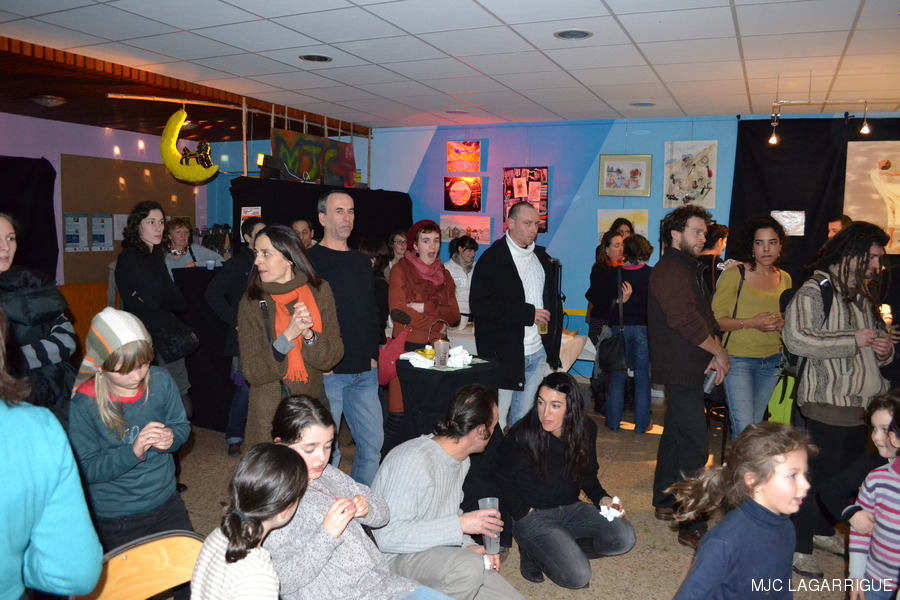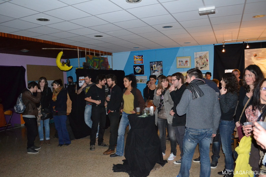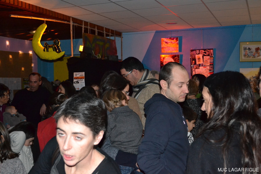 La Lune est sortie de sa grange pour une soirée explosive!!! La Lune a remis les couverts avec une programmation détonante ! Avec en guise de bienvenue : Les Saltimbranques nous ont embarqué dans leur spectacle de marionnettes d'ombres et musique vivante avec " Chance ou malchance ?" Accompagnées par la flûte, l'accordéon et la guitare, les marionnettes de théâtre d'ombres d'inspiration indienne ont emporté petits et grands dans un conte universel plein de rebondissements, d'action, de romantisme et d'humour… Un émerveillement !!! Le moment de l'apéro a été ensuite orchestré par A-Jazz : (Jazz/Funk, Blues) De Wayne Shorter, Kenny Garret en passant par Wes Mongomery ou bien Carlos Jobin et Freddie Hubbard…Six musiciens… Six élèves de la classe jazz du Conservatoire de musique du Tarn (dirigée par David Pautric) nous ont présenté un large répertoire dominé par le jazz dans le style standard mais aussi bossa, le jazz-funk, blues, etc... puis pour nous faire danser et remuer des bras ! La Gaudriole : Acoustique / Chanson française Composé de musiciens des groupes « Place des Arts » et « Kalabilitouil Anastraphadère » ce trio toulousain a balancé une musique acoustique et festive, des histoires de comptoir, des chansons de poch’ comme ils disent, sur le ton de l’humour et de la dérision… La Gaudriole joue à rire et à pleurer, se moque des absurdités du monde mais surtout rend hommage à l’insignifiante beauté du quotidien… La fin de soirée a été assurée par DJ Lorian avec son set Minimal électro ! Dérivée de la techno traditionnelle, la techno minimale (ou bien la minimale électro) propose une structure plus minimaliste, un tempo plus lent et des variations rythmiques et séquentielles moins fréquentes, … et notre invité de fin de soirée en connaît un large rayon !!! Sous l’égide de son label Oxyde Records venez vous faire envoûter par le set de DJ Lorian ….EXPO… L’Atelier de Muriel « Les couleurs de la vie» La peinture est une recherche, une démarche, une idée plus qu’un état…Muriel et les élèves de son atelier de Lagarrigue seront nos invités et présenteront leur travail au public de La Lune et de la MJC. RÉCUPÉRATION DES PHOTOS 1. Positionnez le pointeur de la souris sur la photo choisie et cliquer dessus pour agrandir. 2. Activez le bouton droit de la souris, un menu contextuel s'ouvre. 3. Activez dans ce menu le choix "Save Image As..." ou "Enregistrer l'image sous..." 4. Une fenêtre s'ouvre et vous y indiquerez le lecteur (disque dur, clé USB) et le répertoire où vous souhaitez que la photo soit enregistrée. Vous pouvez aussi faire défiler les photos sous forme de diaporama après agrandissement.