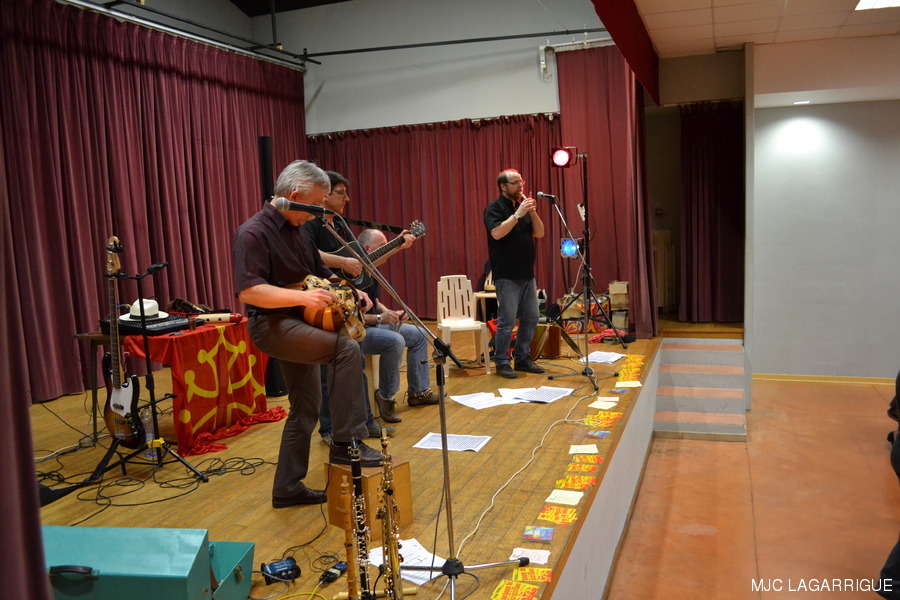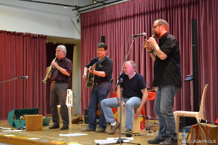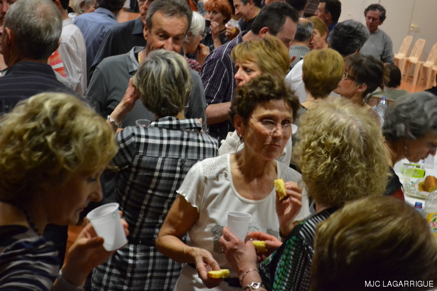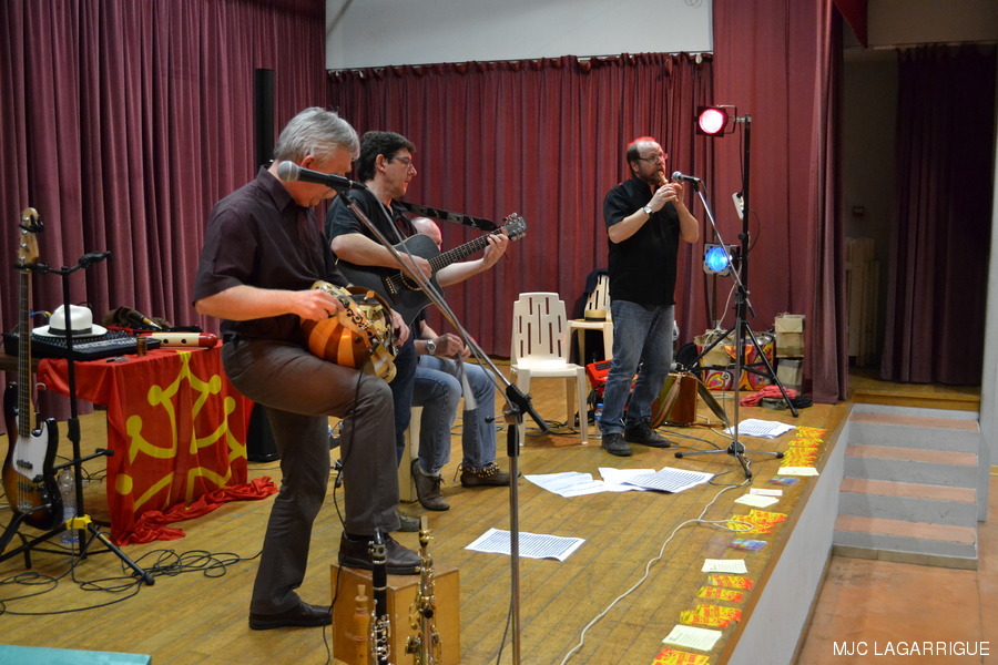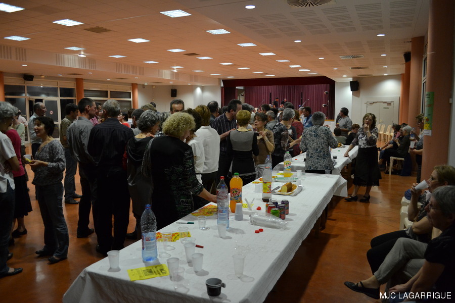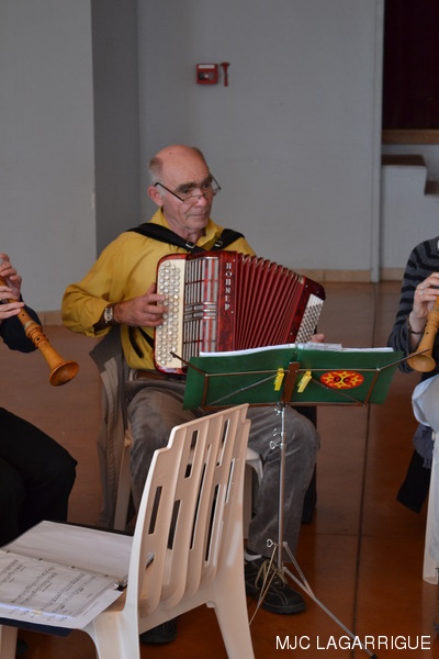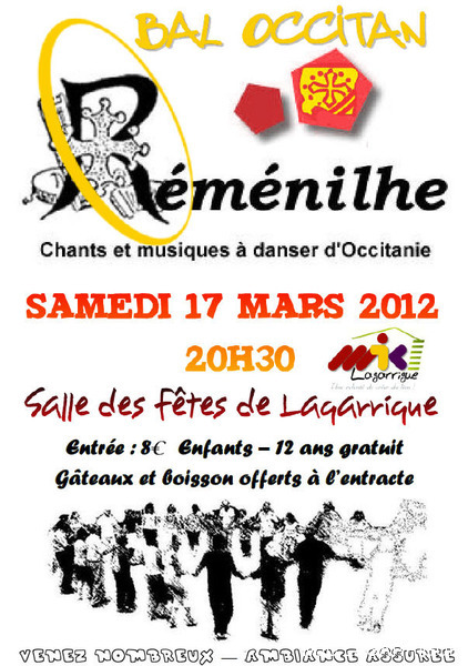 Photos du bal occitan du samedi 17 mars 2012 à la salle des fêtes de Lagarrigue . La journée a commencé par une initiation aux pas de base des danses traditionnelles l’après-midi vers 15h00 à la salle des fêtes de Lagarrigue, rue du causse. Soirée conviviale animée par le groupe Réménhile où quelques 135 danseurs se sont retrouvés sur une piste de danse parfaite. La Soirée a débuté vers 20h30 pour se terminer le dimanche vers 1h00 du matin. Réménilhe est un groupe de musique traditionnelle occitane qui, depuis près de 20 ans, fait danser Toulouse et sa région. Au son de la vielle à roue, des cornemuses gasconnes, de l'accordéon diatonique, des guitares, de la clarinette et des flûtes, Réménilhe explore le répertoire des musiques de bal de l'Occitanie élargie et entraîne son auditoire dans un vaste voyage où tous, danseurs émérites et néophytes peuvent trouver danse à leur pied. Forts de plus de 180 bals et concerts à leur actif, les musiciens de Réménilhe savent s'adapter à leur public et aménager leur répertoire afin de permettre à tous d'entrer dans la danse et la musique traditionnelle. RÉCUPÉRATION DES PHOTOS 1. Positionnez le pointeur de la souris sur la photo choisie et cliquer dessus pour agrandir. 2. Activez le bouton droit de la souris, un menu contextuel s'ouvre. 3. Activez dans ce menu le choix "Save Image As..." ou "Enregistrer l'image sous..." 4. Une fenêtre s'ouvre et vous y indiquerez le lecteur (disque dur, clé USB) et le répertoire où vous souhaitez que la photo soit enregistrée. Vous pouvez aussi faire défiler les photos sous forme de diaporama après agrandissement.