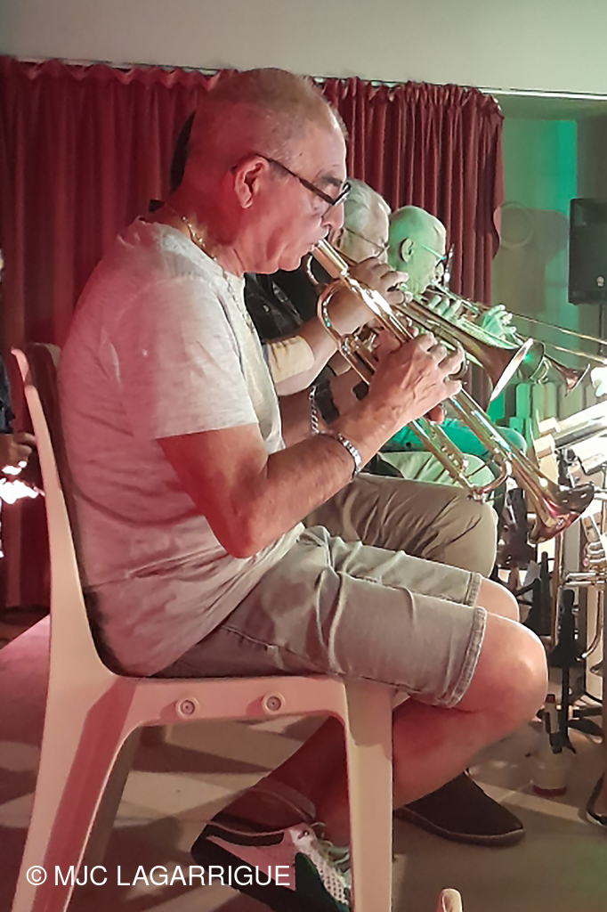 "La dynamique a rapidement pris et d’autres musiciens ont rejoint l’aventure, y compris plusieurs professionnels. Parmi eux, Christian Orante, retraité mais batteur pendant 20 ans au Grand Orchestre le Splendid, nous apporte son groove et son expérience de la scène. À la direction musicale, c’est Christian Escaffre qui "drive" les répétitions avec rigueur, passion et bienveillance, fort de sa solide expérience de chef d’orchestre."