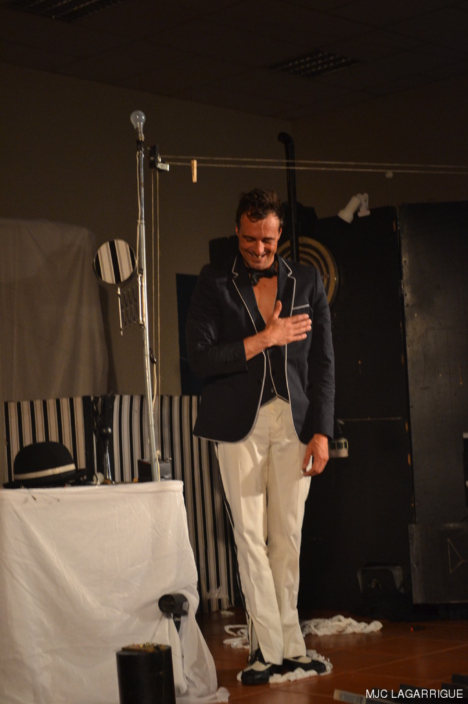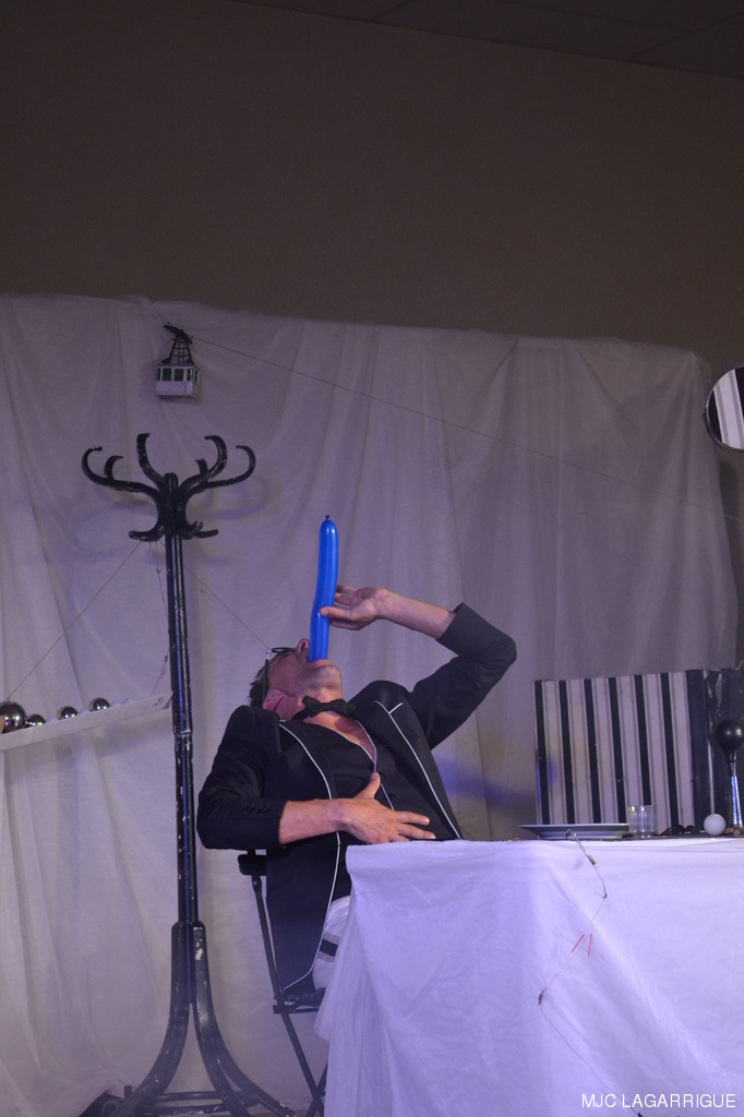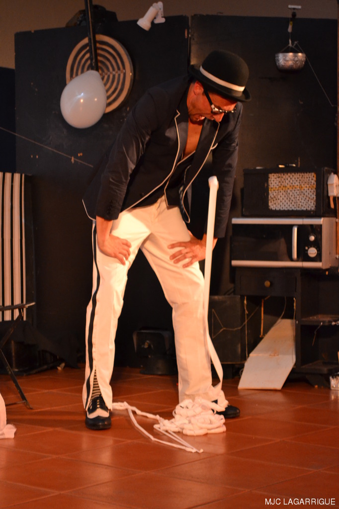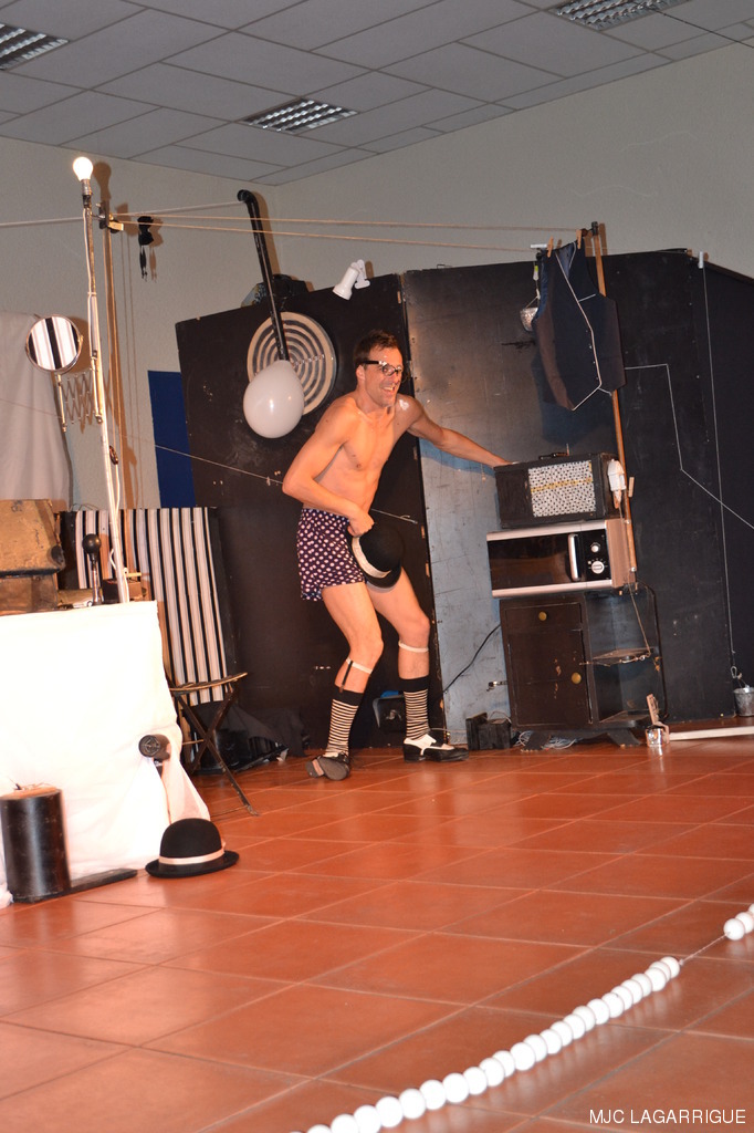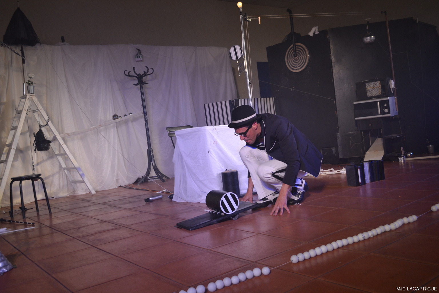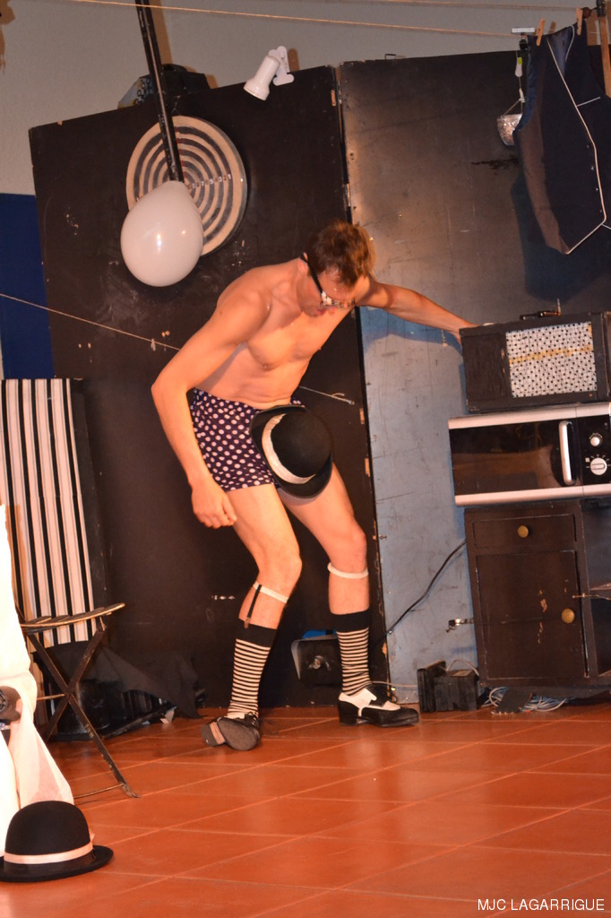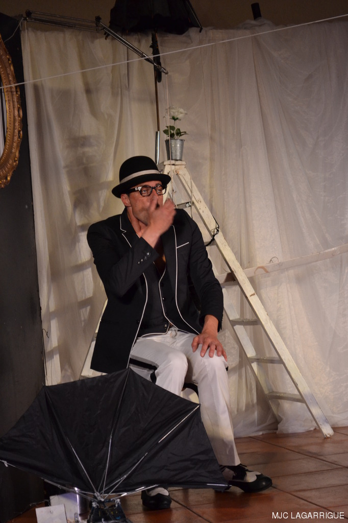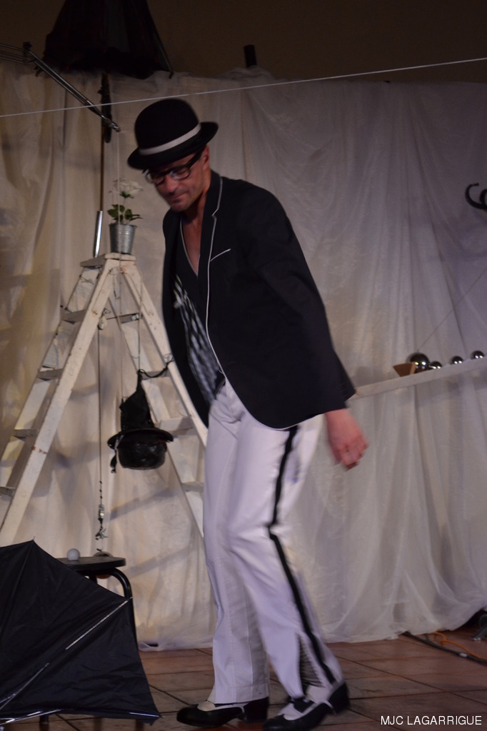 Photos de l'excellent spectacle burlesque et poétique à la fois présenté par la compagnie Blabla. Monsieur Cornichon habite un appartement meublé à l’utilité improbable. Dans cet univers monochrome, il mène une existence des plus ordinaires, cadencée par l’accomplissement de ses tâches ménagères. Pourtant, même s’il porte son nom comme un charme, Monsieur Cornichon a un pouvoir étonnant : il sait rendre le réel poétique. Personnage muet mais ô combien expressif, usant de tics et de tocs, de tricks et de trucs, ce cousin de Mister Bean a plus d’un tour (de magie) dans son sac pour enchanter une vie apparemment banale. Manipulation de chapeaux, bulles de savon, balles de ping-pong tourbillonnantes, dressage, réactions en chaîne, claquettes, tours de passe-passe, tout est prétexte à rendre l’utile insignifiant et l’accessoire indispensable. Dans la pure tradition du burlesque, Fabien Coulon invente un personnage digne de Jacques Tati, retrouvant la fantaisie du cinéma muet : partant d’un quotidien aux contours bornés, il nous propulse dans un univers fabuleux et absurde, d’une drôle de poésie. RÉCUPÉRATION DES PHOTOS 1. Positionnez le pointeur de la souris sur la photo choisie et cliquer dessus pour agrandir. 2. Activez le bouton droit de la souris, un menu contextuel s'ouvre. 3. Activez dans ce menu le choix "Save Image As..." ou "Enregistrer l'image sous..." 4. Une fenêtre s'ouvre et vous y indiquerez le lecteur (disque dur, clé USB) et le répertoire où vous souhaitez que la photo soit enregistrée. Vous pouvez aussi faire défiler les photos sous forme de diaporama après agrandissement.