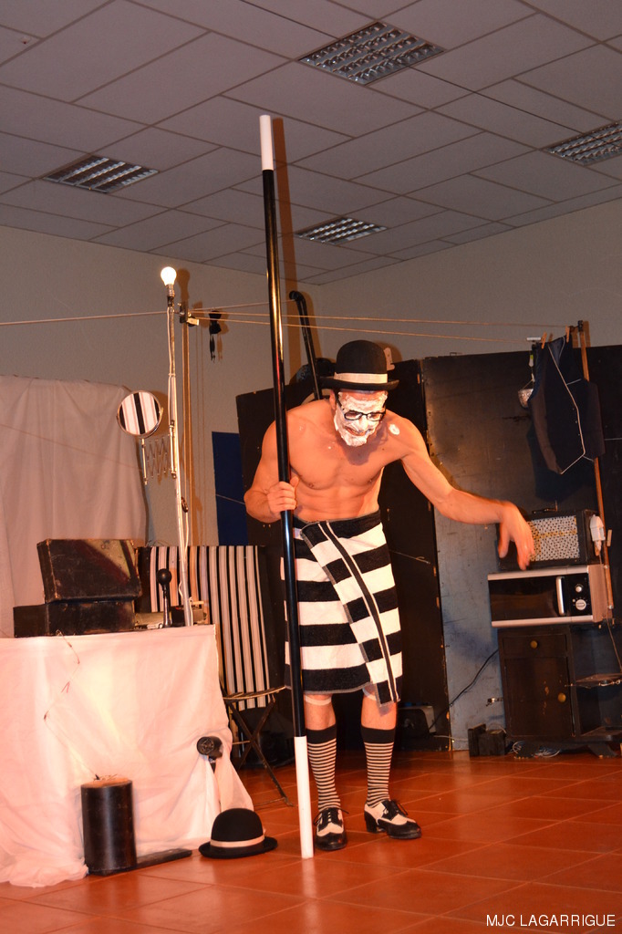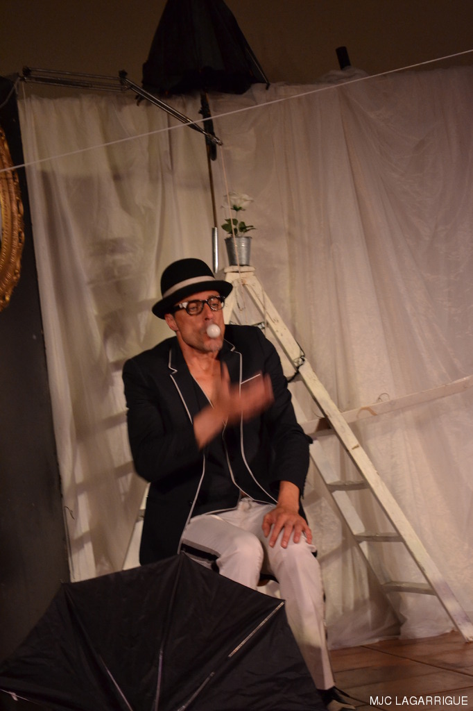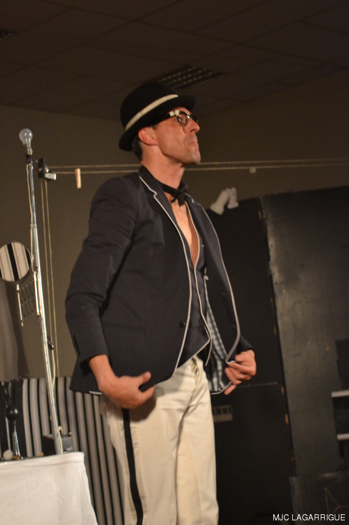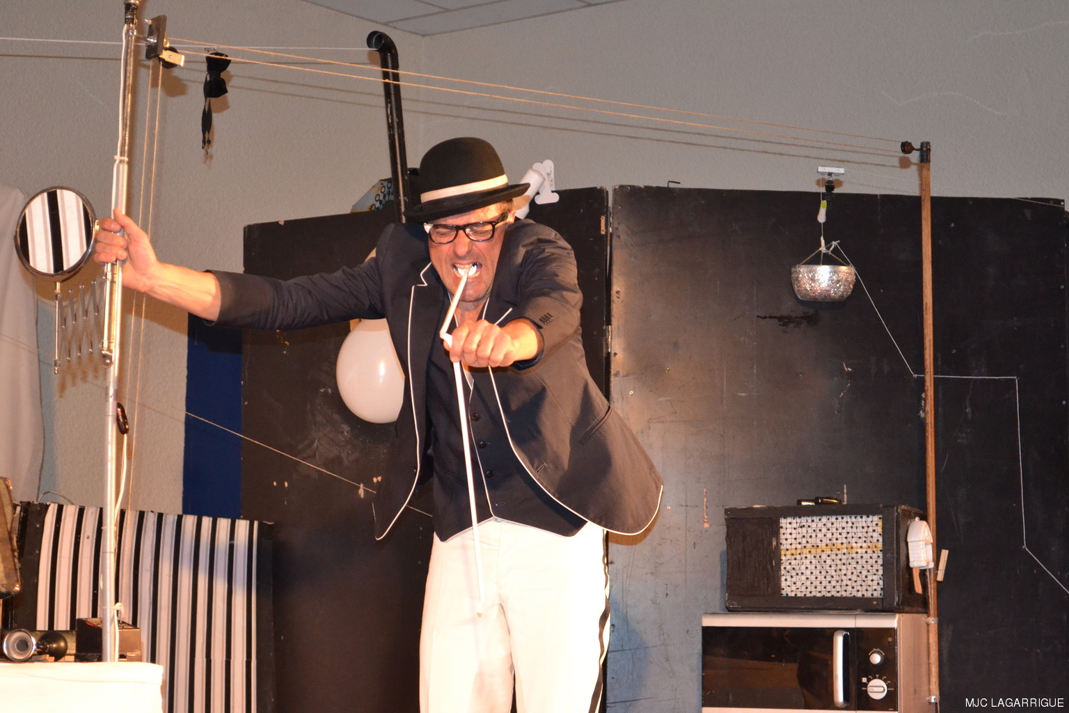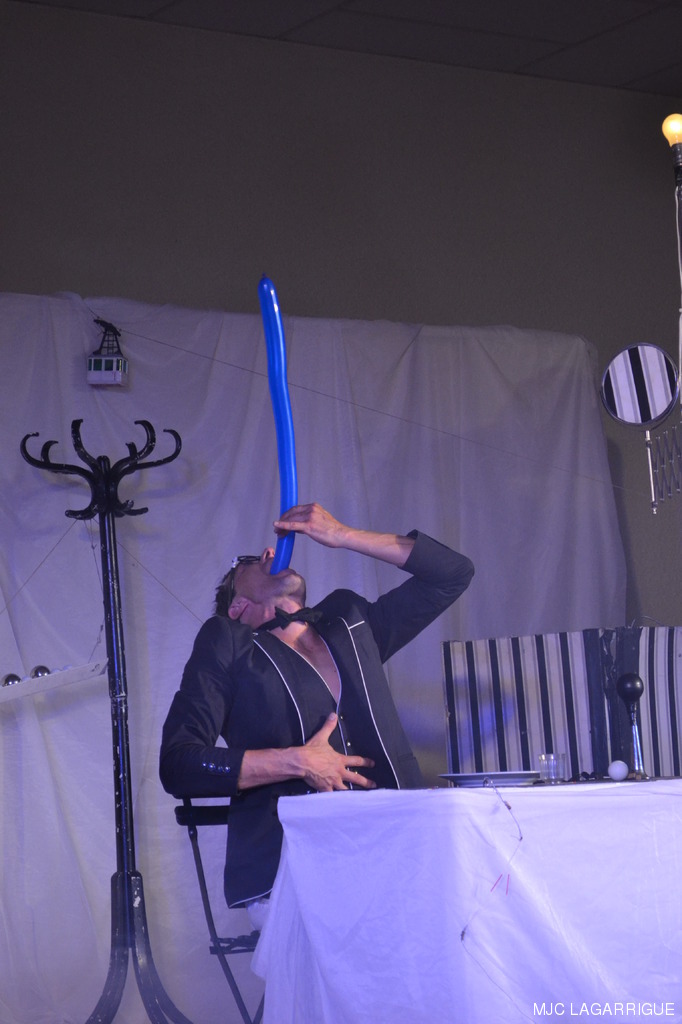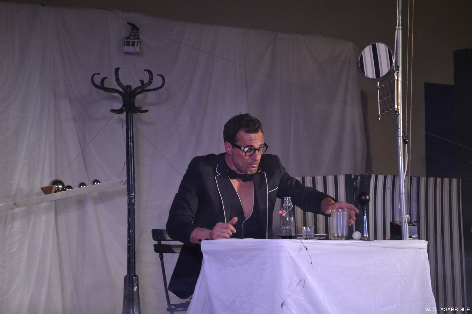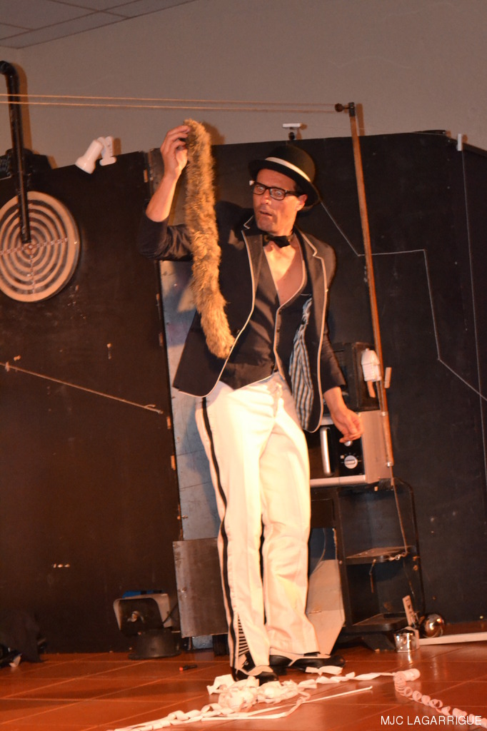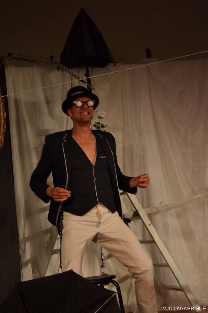 Photos de l'excellent spectacle burlesque et poétique à la fois présenté par la compagnie Blabla. Monsieur Cornichon habite un appartement meublé à l’utilité improbable. Dans cet univers monochrome, il mène une existence des plus ordinaires, cadencée par l’accomplissement de ses tâches ménagères. Pourtant, même s’il porte son nom comme un charme, Monsieur Cornichon a un pouvoir étonnant : il sait rendre le réel poétique. Personnage muet mais ô combien expressif, usant de tics et de tocs, de tricks et de trucs, ce cousin de Mister Bean a plus d’un tour (de magie) dans son sac pour enchanter une vie apparemment banale. Manipulation de chapeaux, bulles de savon, balles de ping-pong tourbillonnantes, dressage, réactions en chaîne, claquettes, tours de passe-passe, tout est prétexte à rendre l’utile insignifiant et l’accessoire indispensable. Dans la pure tradition du burlesque, Fabien Coulon invente un personnage digne de Jacques Tati, retrouvant la fantaisie du cinéma muet : partant d’un quotidien aux contours bornés, il nous propulse dans un univers fabuleux et absurde, d’une drôle de poésie. RÉCUPÉRATION DES PHOTOS 1. Positionnez le pointeur de la souris sur la photo choisie et cliquer dessus pour agrandir. 2. Activez le bouton droit de la souris, un menu contextuel s'ouvre. 3. Activez dans ce menu le choix "Save Image As..." ou "Enregistrer l'image sous..." 4. Une fenêtre s'ouvre et vous y indiquerez le lecteur (disque dur, clé USB) et le répertoire où vous souhaitez que la photo soit enregistrée. Vous pouvez aussi faire défiler les photos sous forme de diaporama après agrandissement.