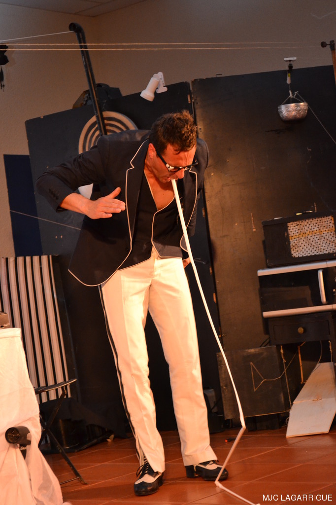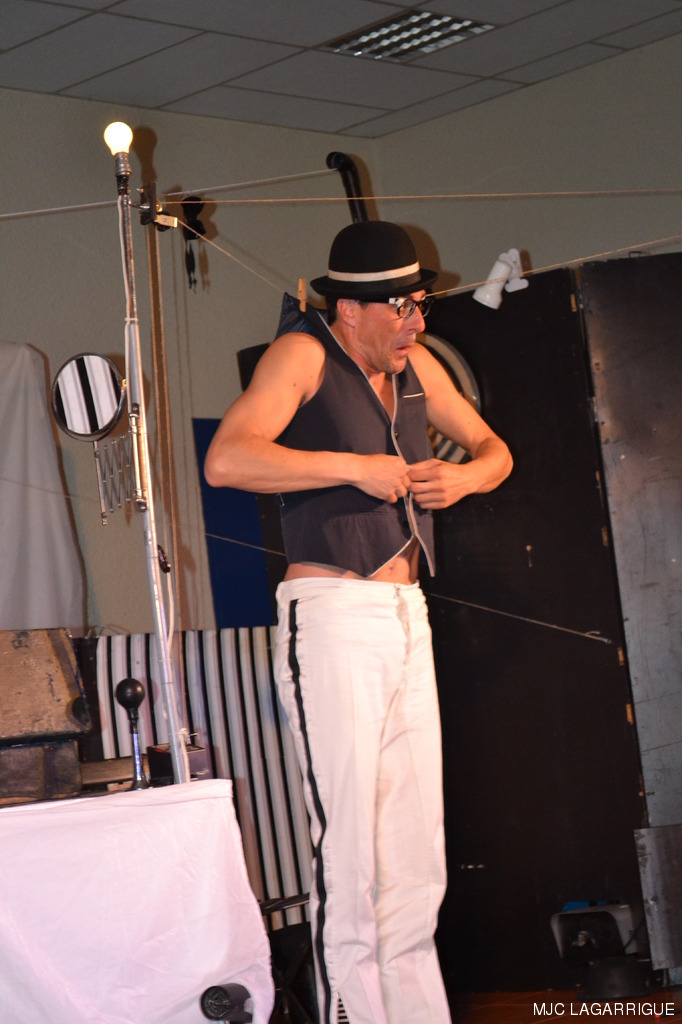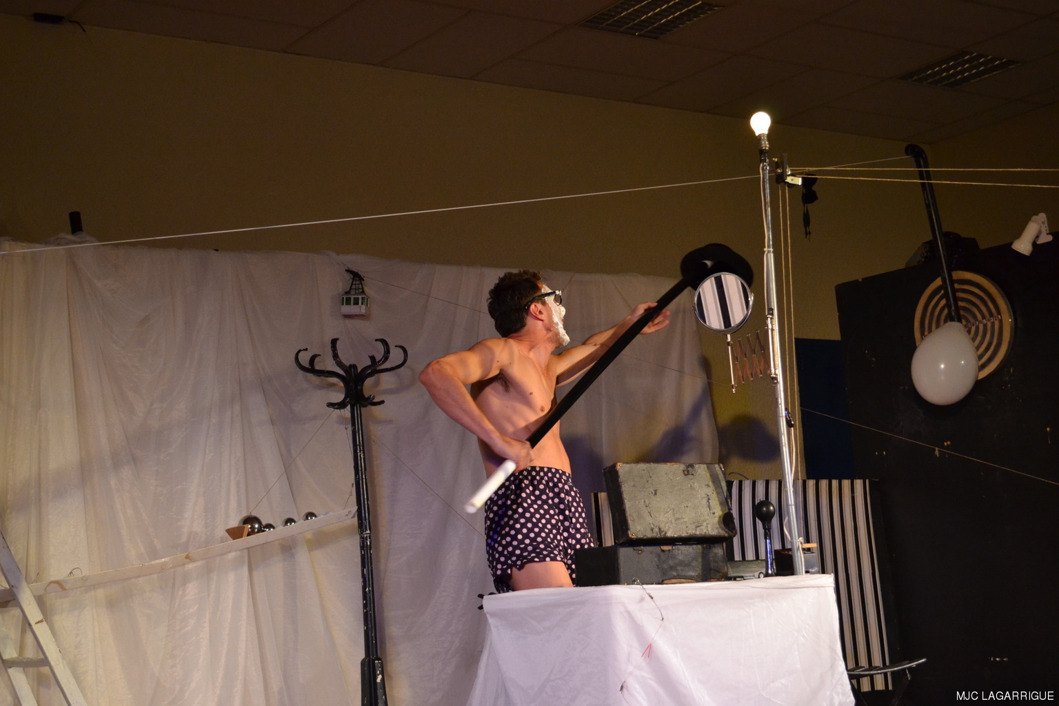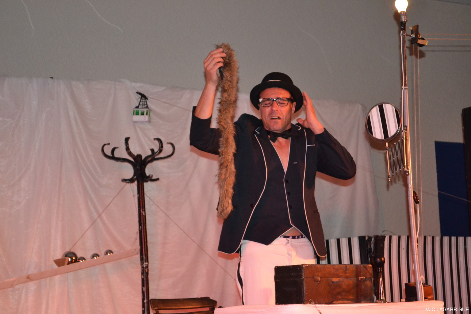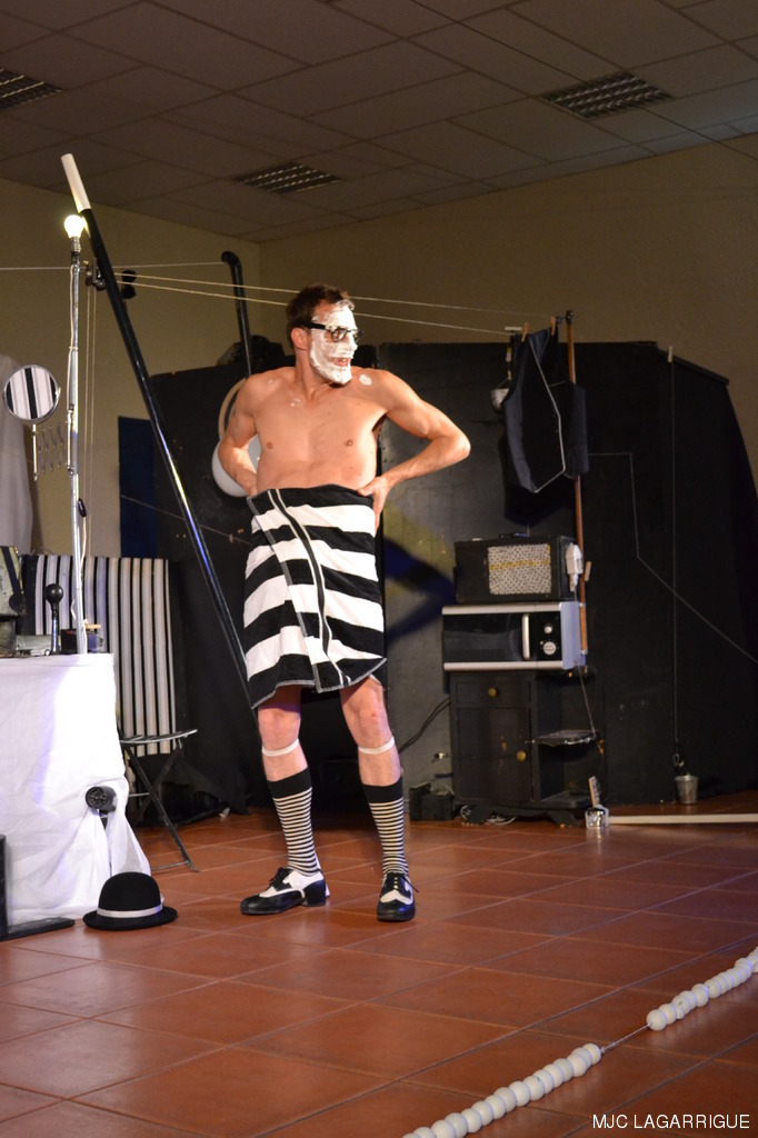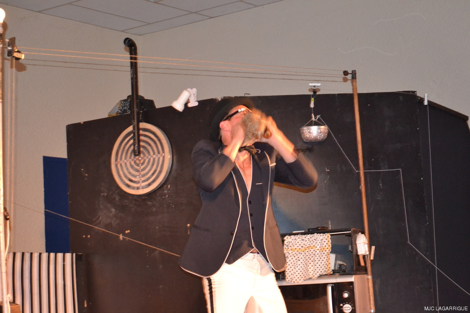 Photos de l'excellent spectacle burlesque et poétique à la fois présenté par la compagnie Blabla. Monsieur Cornichon habite un appartement meublé à l’utilité improbable. Dans cet univers monochrome, il mène une existence des plus ordinaires, cadencée par l’accomplissement de ses tâches ménagères. Pourtant, même s’il porte son nom comme un charme, Monsieur Cornichon a un pouvoir étonnant : il sait rendre le réel poétique. Personnage muet mais ô combien expressif, usant de tics et de tocs, de tricks et de trucs, ce cousin de Mister Bean a plus d’un tour (de magie) dans son sac pour enchanter une vie apparemment banale. Manipulation de chapeaux, bulles de savon, balles de ping-pong tourbillonnantes, dressage, réactions en chaîne, claquettes, tours de passe-passe, tout est prétexte à rendre l’utile insignifiant et l’accessoire indispensable. Dans la pure tradition du burlesque, Fabien Coulon invente un personnage digne de Jacques Tati, retrouvant la fantaisie du cinéma muet : partant d’un quotidien aux contours bornés, il nous propulse dans un univers fabuleux et absurde, d’une drôle de poésie. RÉCUPÉRATION DES PHOTOS 1. Positionnez le pointeur de la souris sur la photo choisie et cliquer dessus pour agrandir. 2. Activez le bouton droit de la souris, un menu contextuel s'ouvre. 3. Activez dans ce menu le choix "Save Image As..." ou "Enregistrer l'image sous..." 4. Une fenêtre s'ouvre et vous y indiquerez le lecteur (disque dur, clé USB) et le répertoire où vous souhaitez que la photo soit enregistrée. Vous pouvez aussi faire défiler les photos sous forme de diaporama après agrandissement.