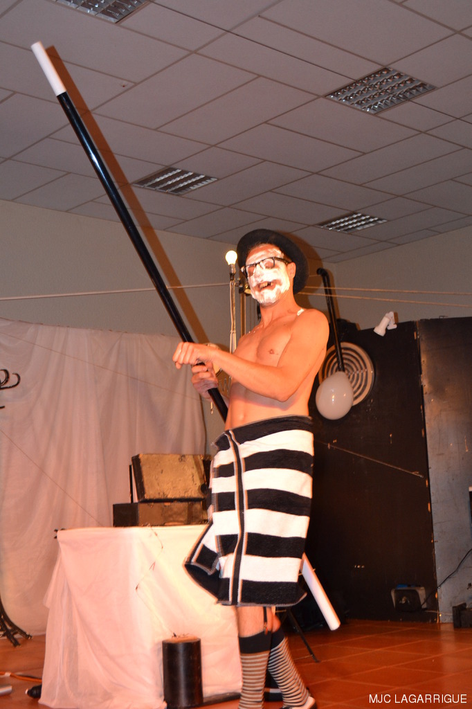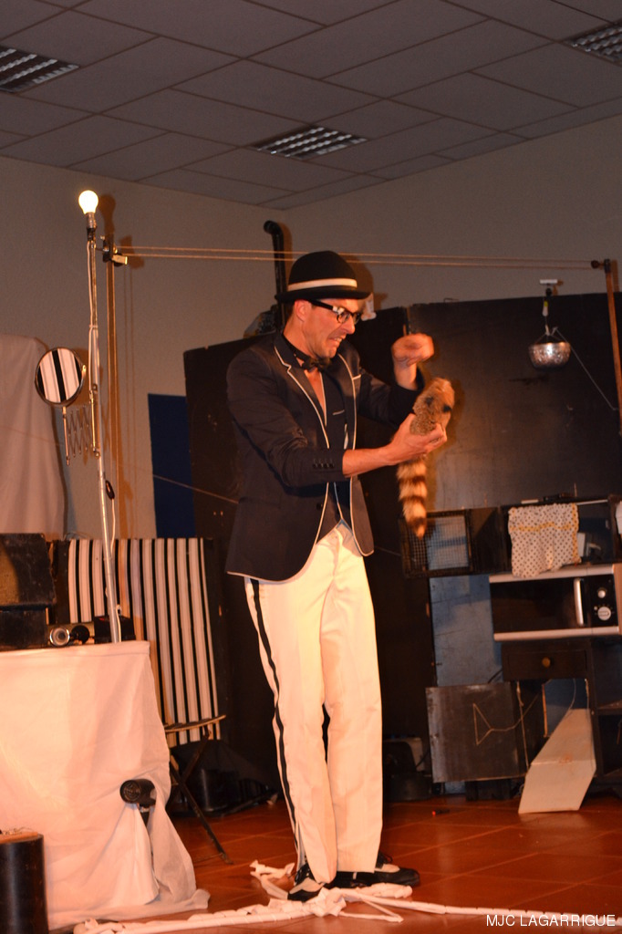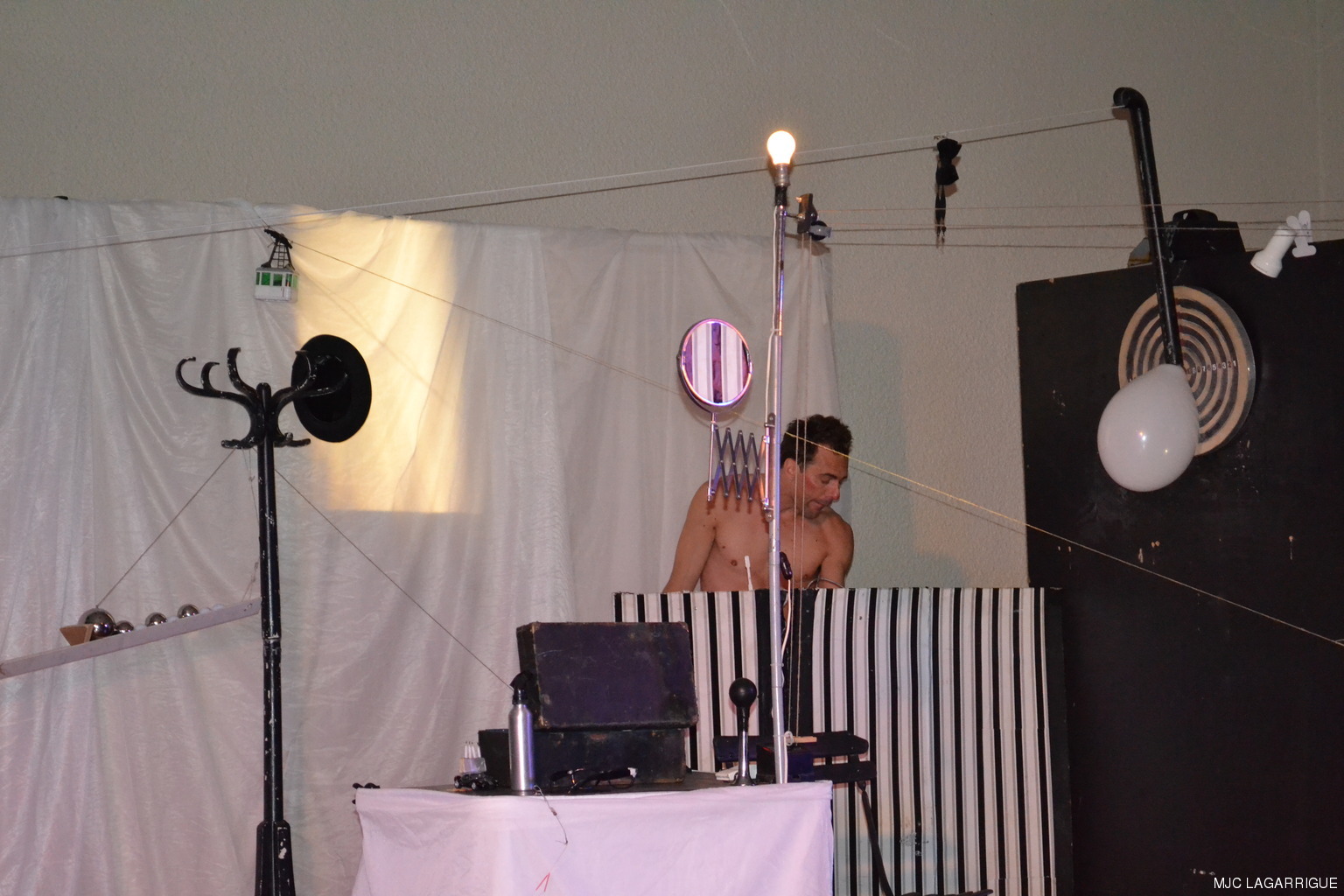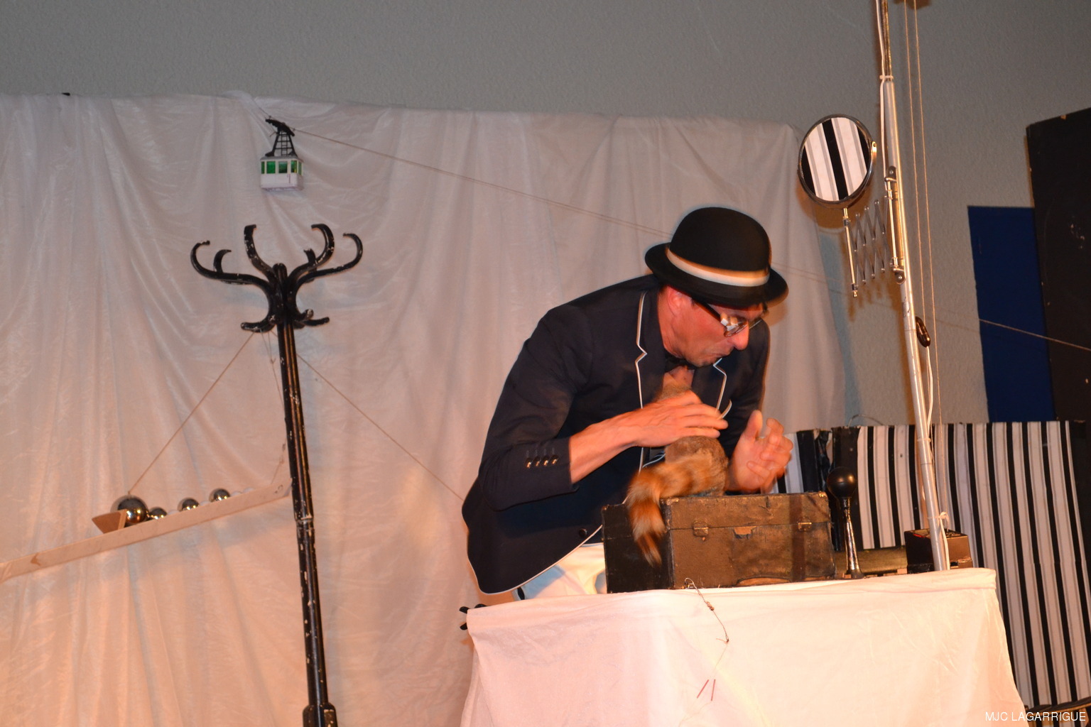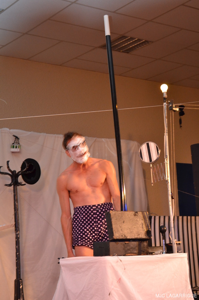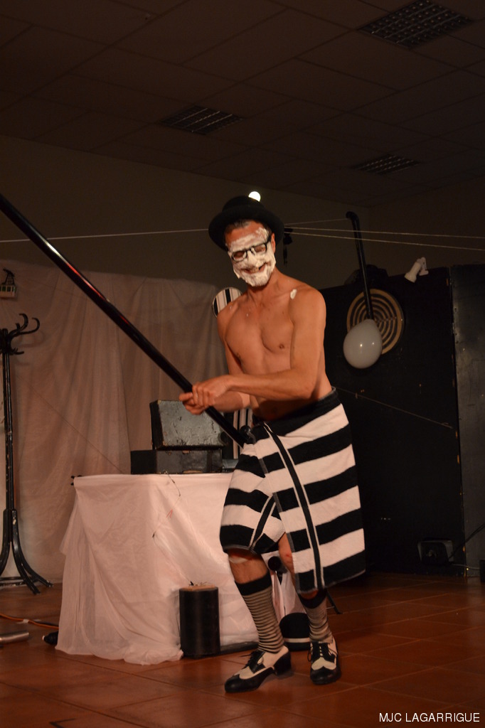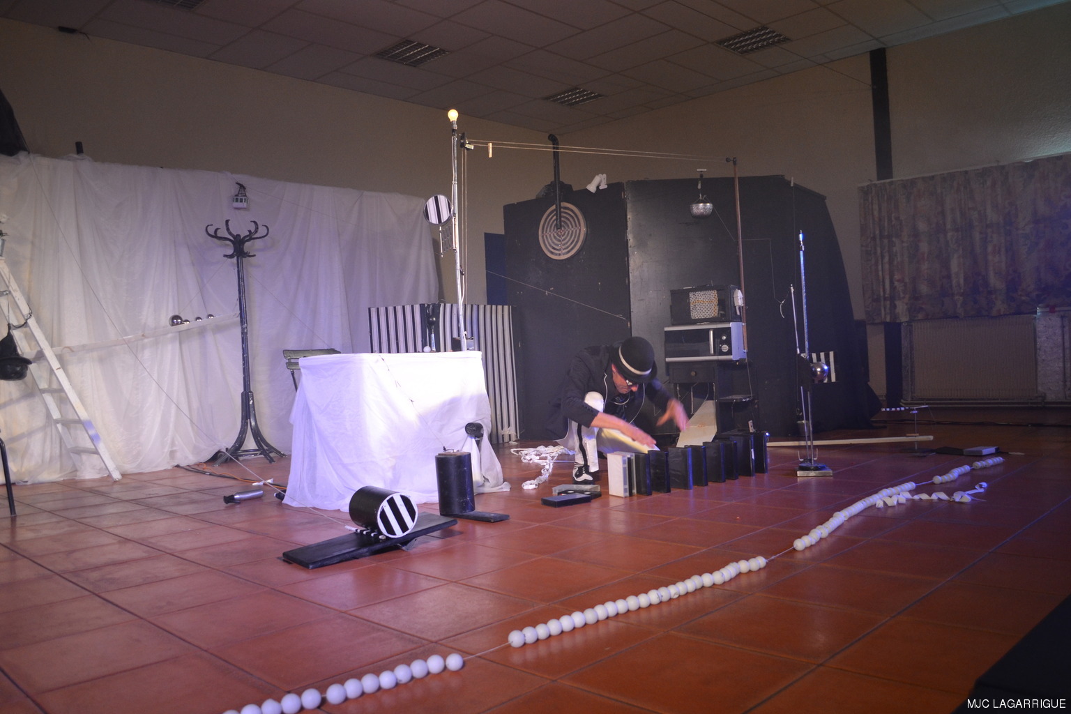 Photos de l'excellent spectacle burlesque et poétique à la fois présenté par la compagnie Blabla. Monsieur Cornichon habite un appartement meublé à l’utilité improbable. Dans cet univers monochrome, il mène une existence des plus ordinaires, cadencée par l’accomplissement de ses tâches ménagères. Pourtant, même s’il porte son nom comme un charme, Monsieur Cornichon a un pouvoir étonnant : il sait rendre le réel poétique. Personnage muet mais ô combien expressif, usant de tics et de tocs, de tricks et de trucs, ce cousin de Mister Bean a plus d’un tour (de magie) dans son sac pour enchanter une vie apparemment banale. Manipulation de chapeaux, bulles de savon, balles de ping-pong tourbillonnantes, dressage, réactions en chaîne, claquettes, tours de passe-passe, tout est prétexte à rendre l’utile insignifiant et l’accessoire indispensable. Dans la pure tradition du burlesque, Fabien Coulon invente un personnage digne de Jacques Tati, retrouvant la fantaisie du cinéma muet : partant d’un quotidien aux contours bornés, il nous propulse dans un univers fabuleux et absurde, d’une drôle de poésie. RÉCUPÉRATION DES PHOTOS 1. Positionnez le pointeur de la souris sur la photo choisie et cliquer dessus pour agrandir. 2. Activez le bouton droit de la souris, un menu contextuel s'ouvre. 3. Activez dans ce menu le choix "Save Image As..." ou "Enregistrer l'image sous..." 4. Une fenêtre s'ouvre et vous y indiquerez le lecteur (disque dur, clé USB) et le répertoire où vous souhaitez que la photo soit enregistrée. Vous pouvez aussi faire défiler les photos sous forme de diaporama après agrandissement.