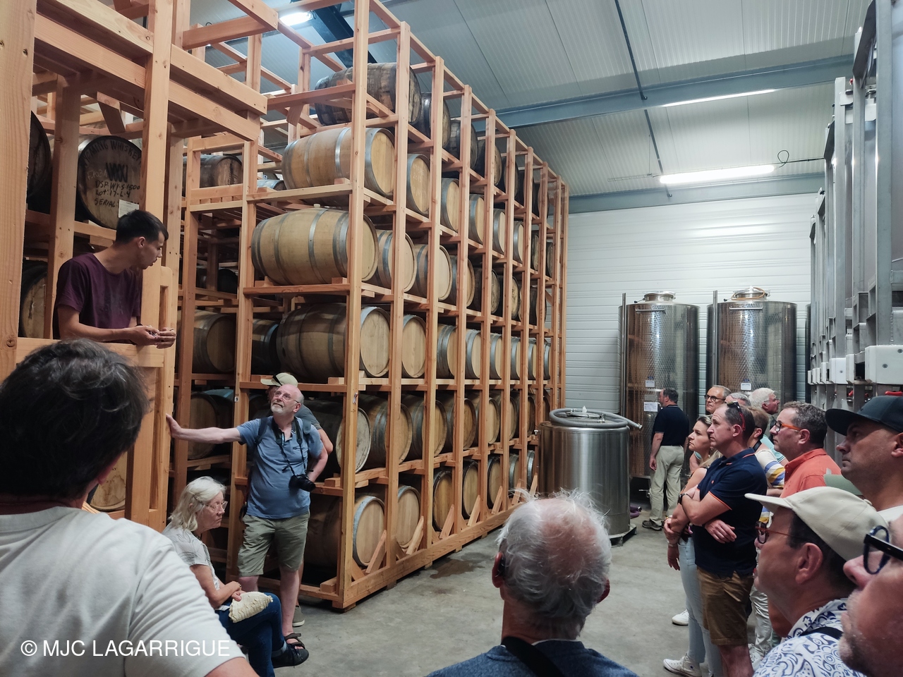 Vint ensuite le moment tant attendu : la dégustation. Toute la gamme nous a été présentée et goûtée avec un sérieux tout relatif, mais une modération absolue ! Car s'il est vrai que l’on goûte mieux lorsque l’esprit est libre, il ne fallait pas oublier qu'après, il y avait… le retour sur Lagarrigue ! Autant dire que chacun a surveillé son verre comme un trésor, oscillant entre plaisir et précaution.