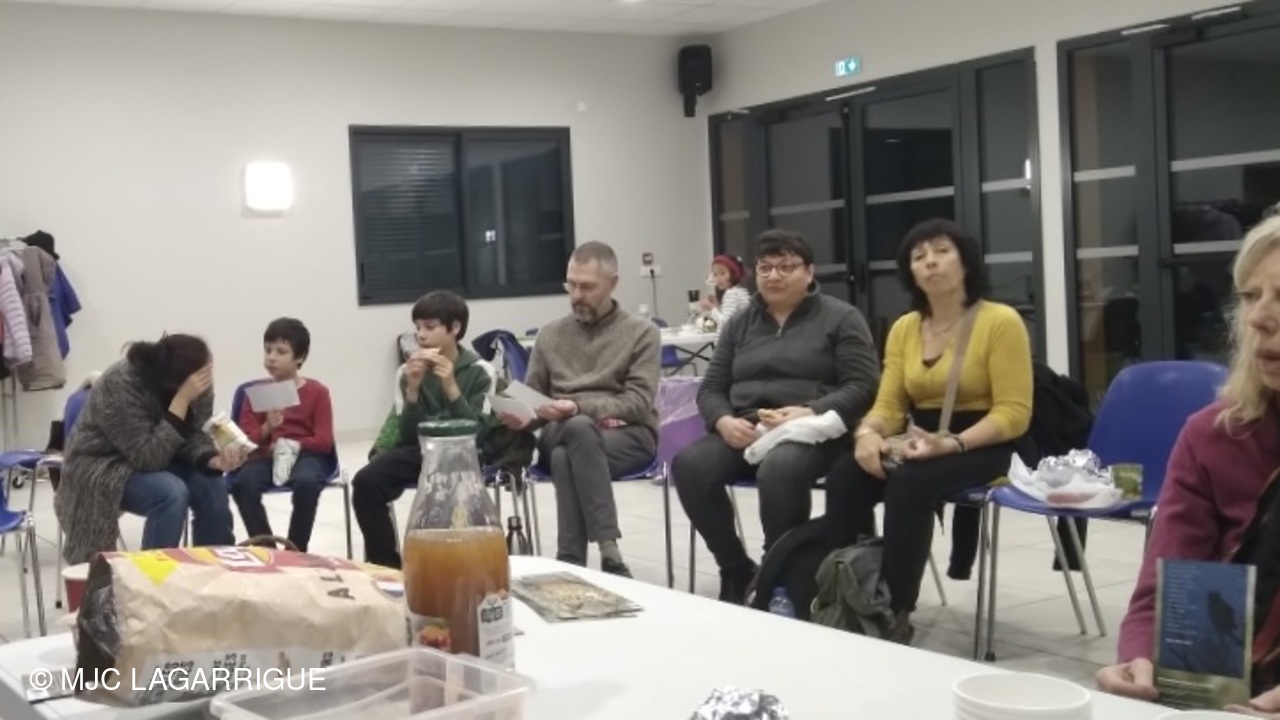 La soirée s'est terminée par un temps de lecture autour de la nuit : poèmes, textes courts, histoires… Adultes et enfants ont partagé ce moment chaleureux en grignotant les encas apportés.