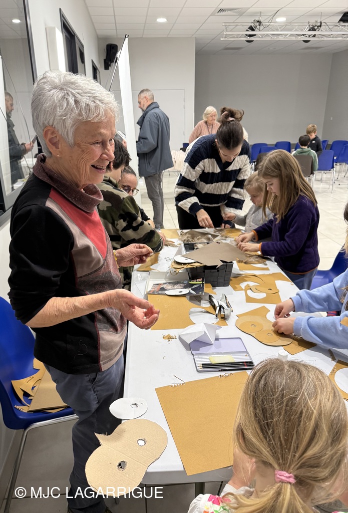 Avec Christiane, chacun a pu repartir avec son masque de chouette fait maison.