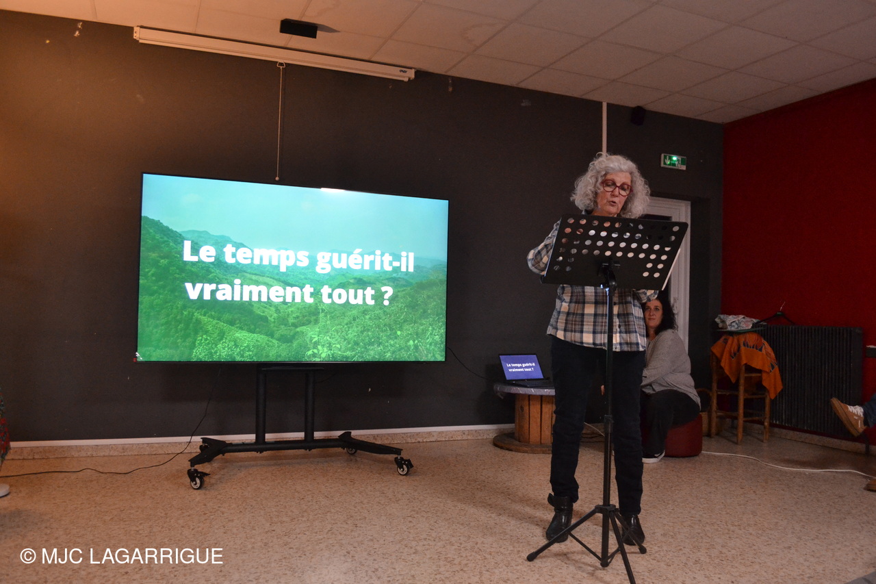 Des participant•e•s issus du public ont ouvert la soirée avec une lecture de textes, avant que nos sept orateurs courageux — Arlette, Gisèle, Anne, Michel, Christian, Nadine et Françoise — ne se lancent dans l’arène. Sept mois de préparation, de doutes, de rires, de « je n’y arriverai jamais », suivis de « finalement si », puis de « mais pourquoi j’ai dit oui déjà ? »… pour finalement offrir au public des prestations aussi sensibles que brillantes.