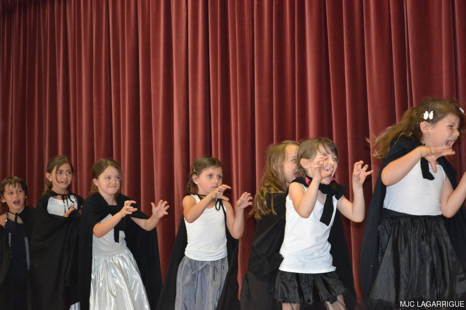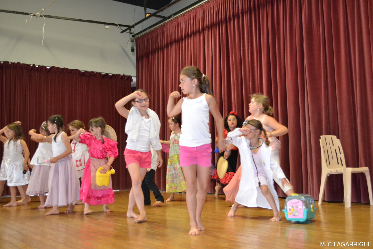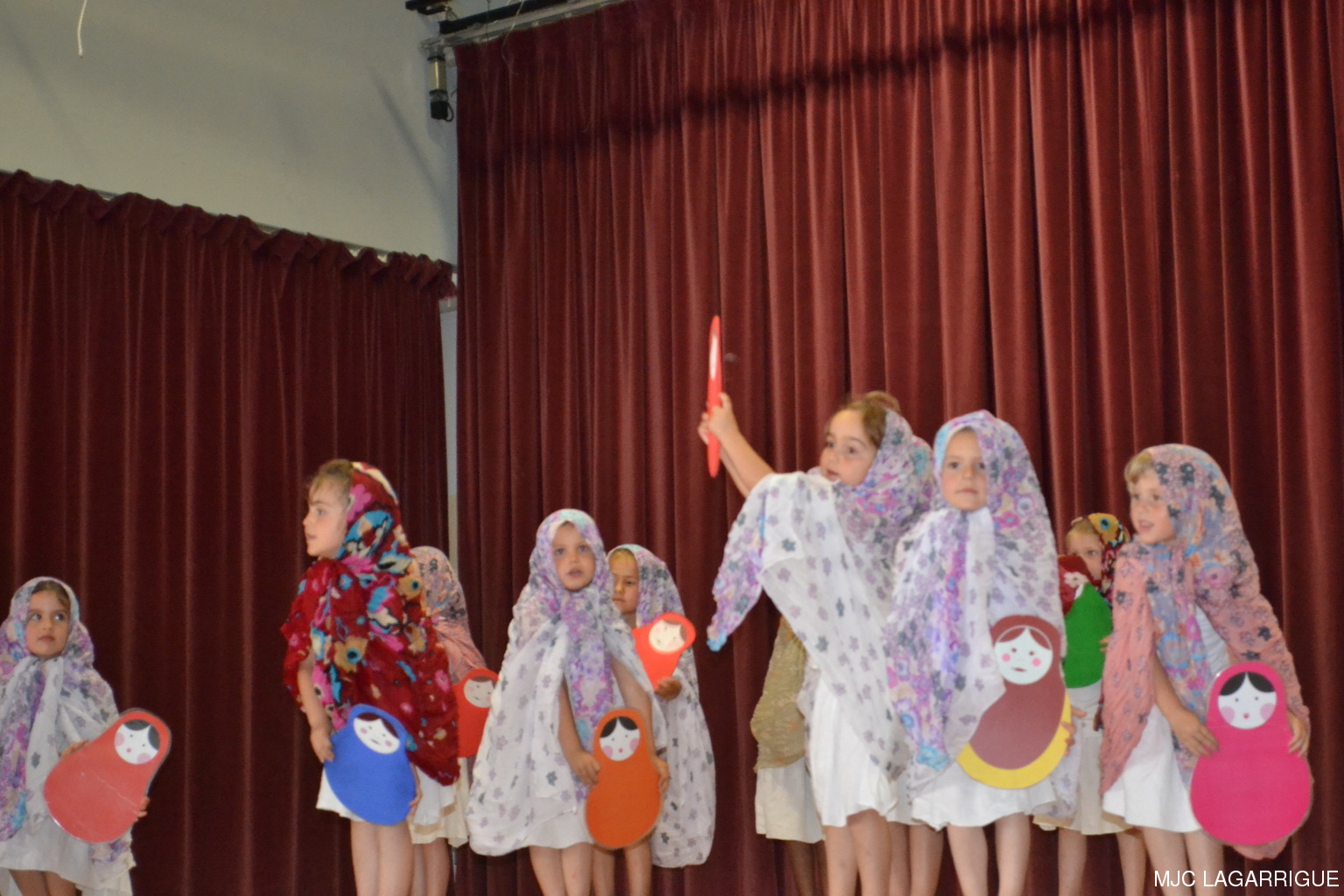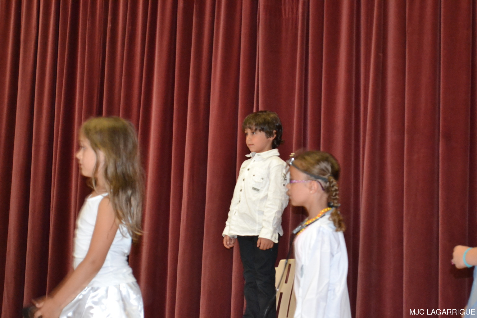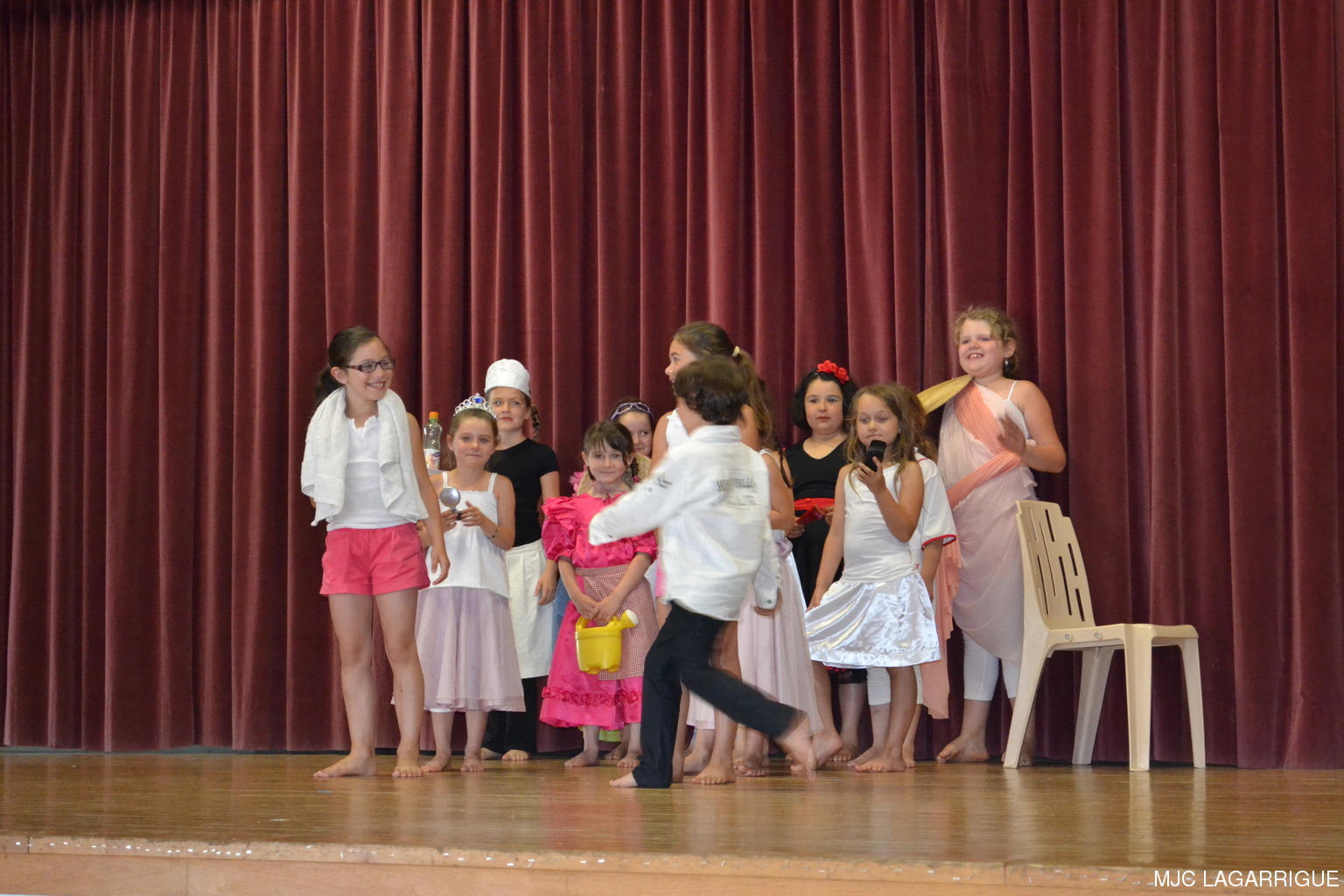 Comme chaque année depuis 3 ans, tous les clubs d'activité de la MJC de Lagarrigue se sont mobilisés pour préparer la fête de fin de saison, qui s'est déroulée le samedi 23 juin 2012 à partir de 16h00 à la salle des fête de la commune. Après une saison très riche, cela a été l'occasion pour les 480 adhérents de la maison de se retrouver, pour partager des moments de plaisir, de spectacles, de rencontres et de découvertes, ce qui montre que notre maison occupe une place prépondérante dans le monde associatif local. Photos pêle-mêle de la fête de la MJC de Lagarrigue 2012 avec au programme : Nouvel an Russe du groupe de danse des 4/ 7ans de Mireille Moley Step des élèves de l'école primaire avec Nathalie Ballester. La journée de la Femme avec les 7/10 ans de Mireille Moley Zumba des ados de Nathalie Ballester. Betty Boop 4/7 ans de Mireille Moley. Zumba adultes avec Nathale Ballester Halloween (7/10 ans) Mireille Moley. St Valentin avec l'ensembles des danseuses et danseurs de Mireille Moley. Zumba avec ados et adultes Guitares avec les ados de Florian Bossuwe puis avec les adultes débutants. Théâtre avec la troupe de la MJC "La télé ne marche plus" Apéro dinatoire avec le groupe de musique, les danses traditionnelles et les danses de salons. Auberge espagnole Spectacle de Magie avec Sylvio. le magicien. RÉCUPÉRATION DES PHOTOS 1. Positionnez le pointeur de la souris sur la photo choisie et cliquer dessus pour agrandir. 2. Activez le bouton droit de la souris, un menu contextuel s'ouvre. 3. Activez dans ce menu le choix "Save Image As..." ou "Enregistrer l'image sous..." 4. Une fenêtre s'ouvre et vous y indiquerez le lecteur (disque dur, clé USB) et le répertoire où vous souhaitez que la photo soit enregistrée. Vous pouvez aussi faire défiler les photos sous forme de diaporama après agrandissement.