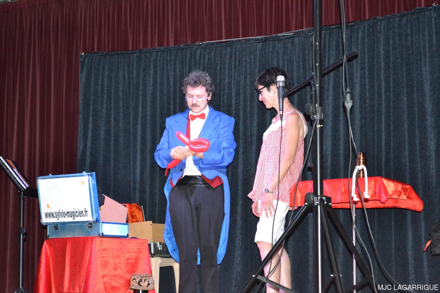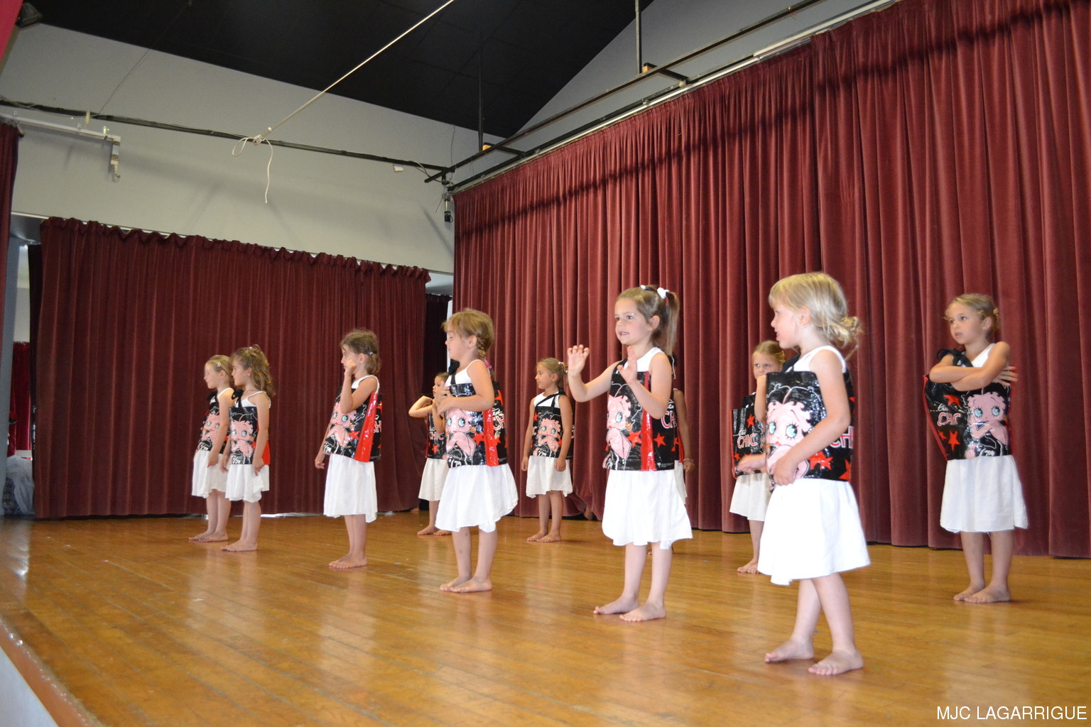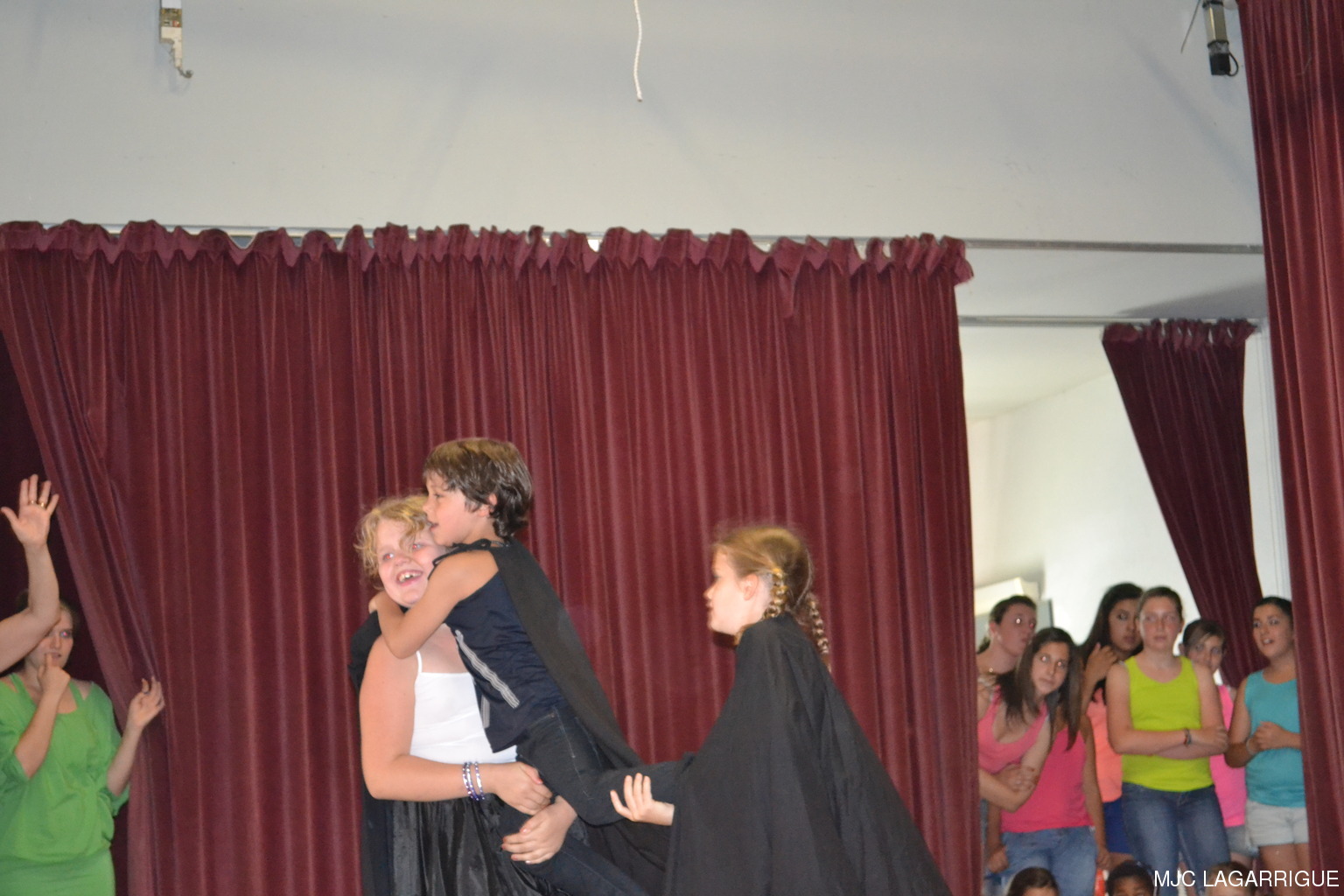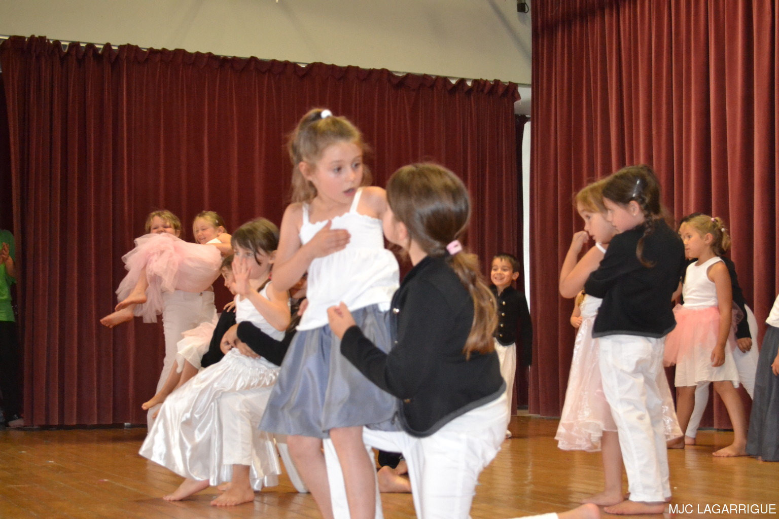 Comme chaque année depuis 3 ans, tous les clubs d'activité de la MJC de Lagarrigue se sont mobilisés pour préparer la fête de fin de saison, qui s'est déroulée le samedi 23 juin 2012 à partir de 16h00 à la salle des fête de la commune. Après une saison très riche, cela a été l'occasion pour les 480 adhérents de la maison de se retrouver, pour partager des moments de plaisir, de spectacles, de rencontres et de découvertes, ce qui montre que notre maison occupe une place prépondérante dans le monde associatif local. Photos pêle-mêle de la fête de la MJC de Lagarrigue 2012 avec au programme : Nouvel an Russe du groupe de danse des 4/ 7ans de Mireille Moley Step des élèves de l'école primaire avec Nathalie Ballester. La journée de la Femme avec les 7/10 ans de Mireille Moley Zumba des ados de Nathalie Ballester. Betty Boop 4/7 ans de Mireille Moley. Zumba adultes avec Nathale Ballester Halloween (7/10 ans) Mireille Moley. St Valentin avec l'ensembles des danseuses et danseurs de Mireille Moley. Zumba avec ados et adultes Guitares avec les ados de Florian Bossuwe puis avec les adultes débutants. Théâtre avec la troupe de la MJC "La télé ne marche plus" Apéro dinatoire avec le groupe de musique, les danses traditionnelles et les danses de salons. Auberge espagnole Spectacle de Magie avec Sylvio. le magicien. RÉCUPÉRATION DES PHOTOS 1. Positionnez le pointeur de la souris sur la photo choisie et cliquer dessus pour agrandir. 2. Activez le bouton droit de la souris, un menu contextuel s'ouvre. 3. Activez dans ce menu le choix "Save Image As..." ou "Enregistrer l'image sous..." 4. Une fenêtre s'ouvre et vous y indiquerez le lecteur (disque dur, clé USB) et le répertoire où vous souhaitez que la photo soit enregistrée. Vous pouvez aussi faire défiler les photos sous forme de diaporama après agrandissement.