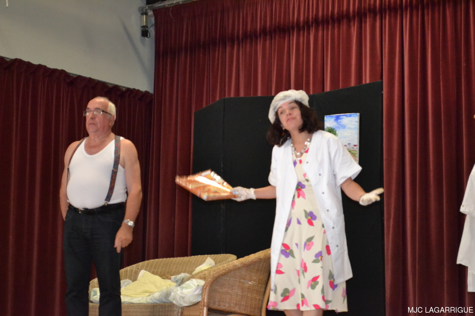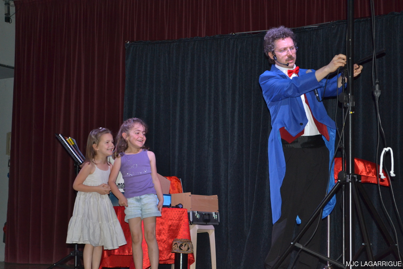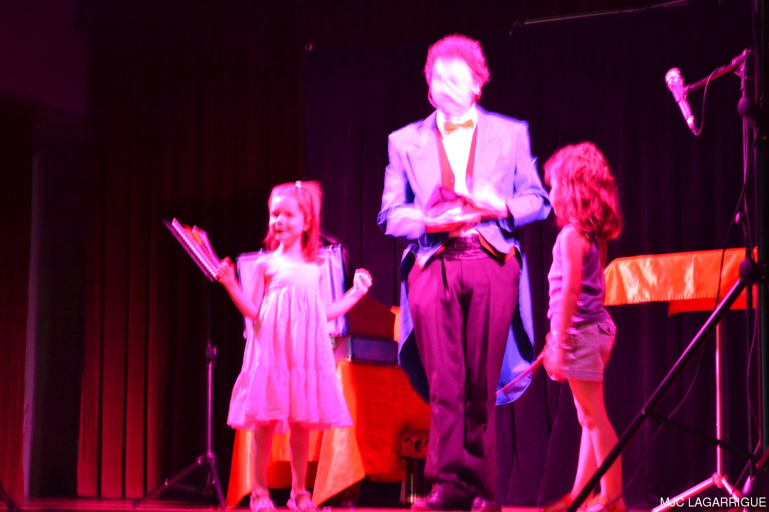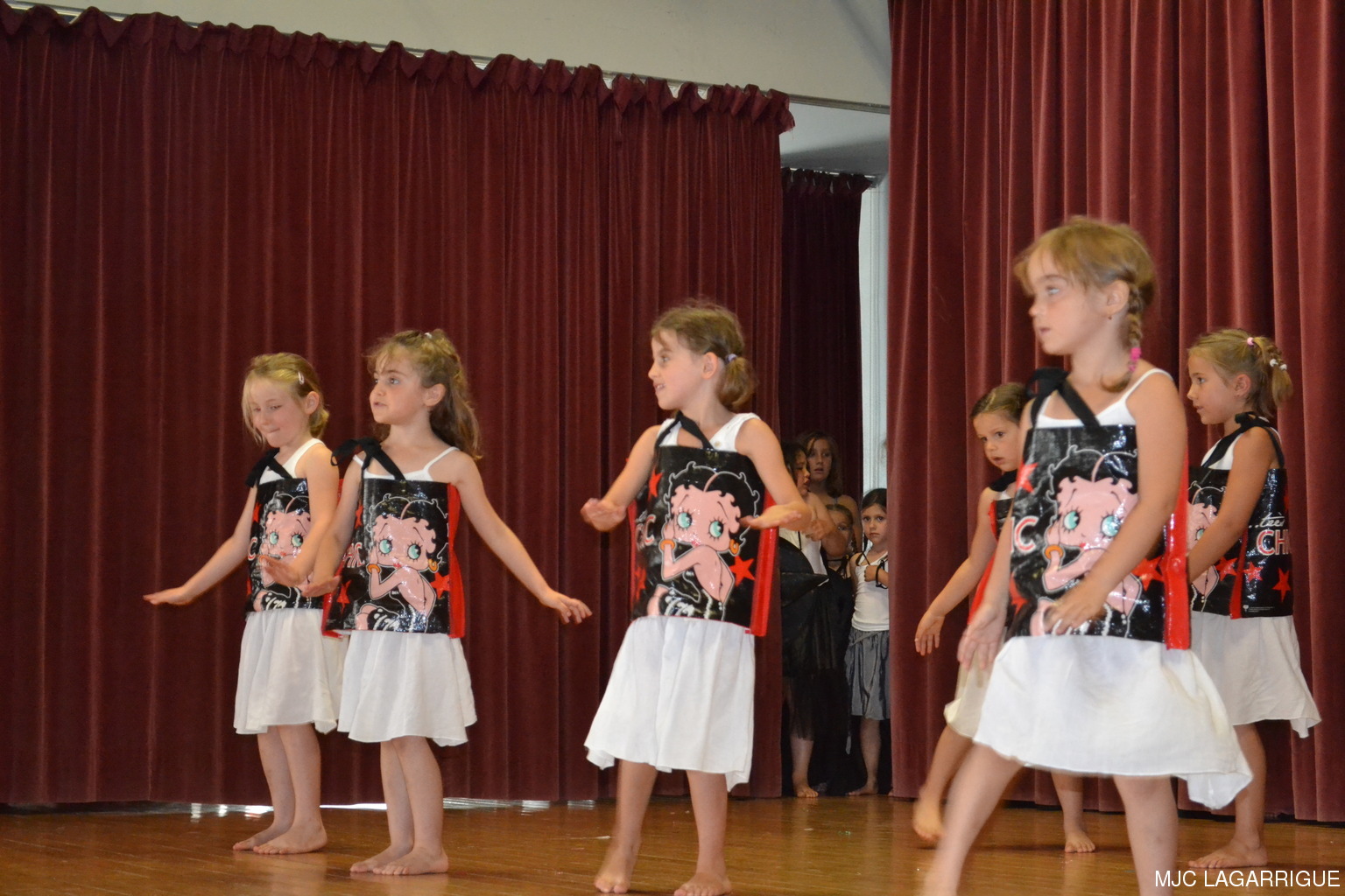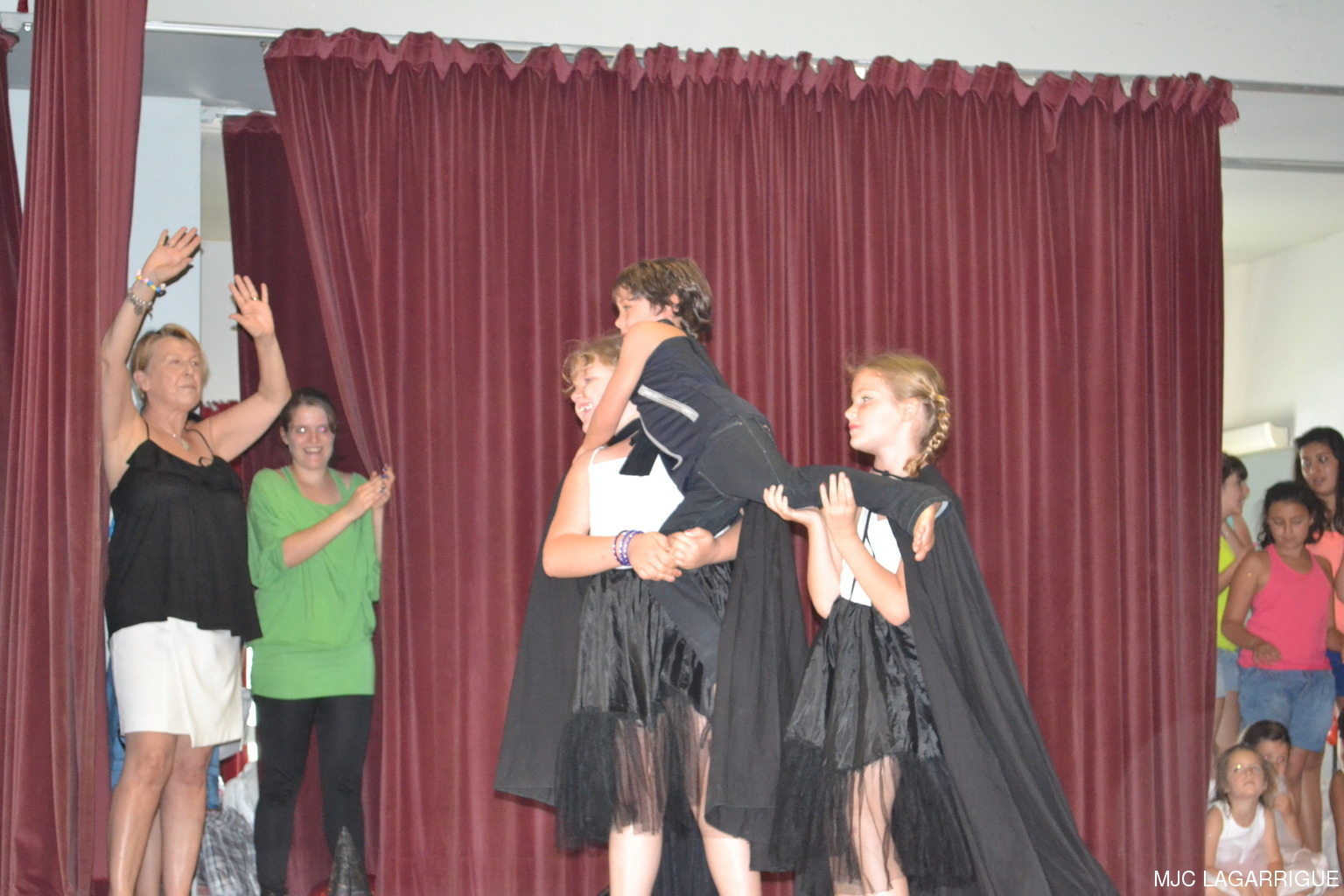 Comme chaque année depuis 3 ans, tous les clubs d'activité de la MJC de Lagarrigue se sont mobilisés pour préparer la fête de fin de saison, qui s'est déroulée le samedi 23 juin 2012 à partir de 16h00 à la salle des fête de la commune. Après une saison très riche, cela a été l'occasion pour les 480 adhérents de la maison de se retrouver, pour partager des moments de plaisir, de spectacles, de rencontres et de découvertes, ce qui montre que notre maison occupe une place prépondérante dans le monde associatif local. Photos pêle-mêle de la fête de la MJC de Lagarrigue 2012 avec au programme : Nouvel an Russe du groupe de danse des 4/ 7ans de Mireille Moley Step des élèves de l'école primaire avec Nathalie Ballester. La journée de la Femme avec les 7/10 ans de Mireille Moley Zumba des ados de Nathalie Ballester. Betty Boop 4/7 ans de Mireille Moley. Zumba adultes avec Nathale Ballester Halloween (7/10 ans) Mireille Moley. St Valentin avec l'ensembles des danseuses et danseurs de Mireille Moley. Zumba avec ados et adultes Guitares avec les ados de Florian Bossuwe puis avec les adultes débutants. Théâtre avec la troupe de la MJC "La télé ne marche plus" Apéro dinatoire avec le groupe de musique, les danses traditionnelles et les danses de salons. Auberge espagnole Spectacle de Magie avec Sylvio. le magicien. RÉCUPÉRATION DES PHOTOS 1. Positionnez le pointeur de la souris sur la photo choisie et cliquer dessus pour agrandir. 2. Activez le bouton droit de la souris, un menu contextuel s'ouvre. 3. Activez dans ce menu le choix "Save Image As..." ou "Enregistrer l'image sous..." 4. Une fenêtre s'ouvre et vous y indiquerez le lecteur (disque dur, clé USB) et le répertoire où vous souhaitez que la photo soit enregistrée. Vous pouvez aussi faire défiler les photos sous forme de diaporama après agrandissement.