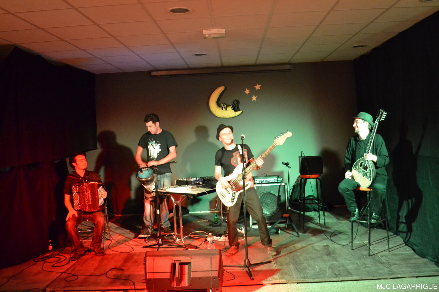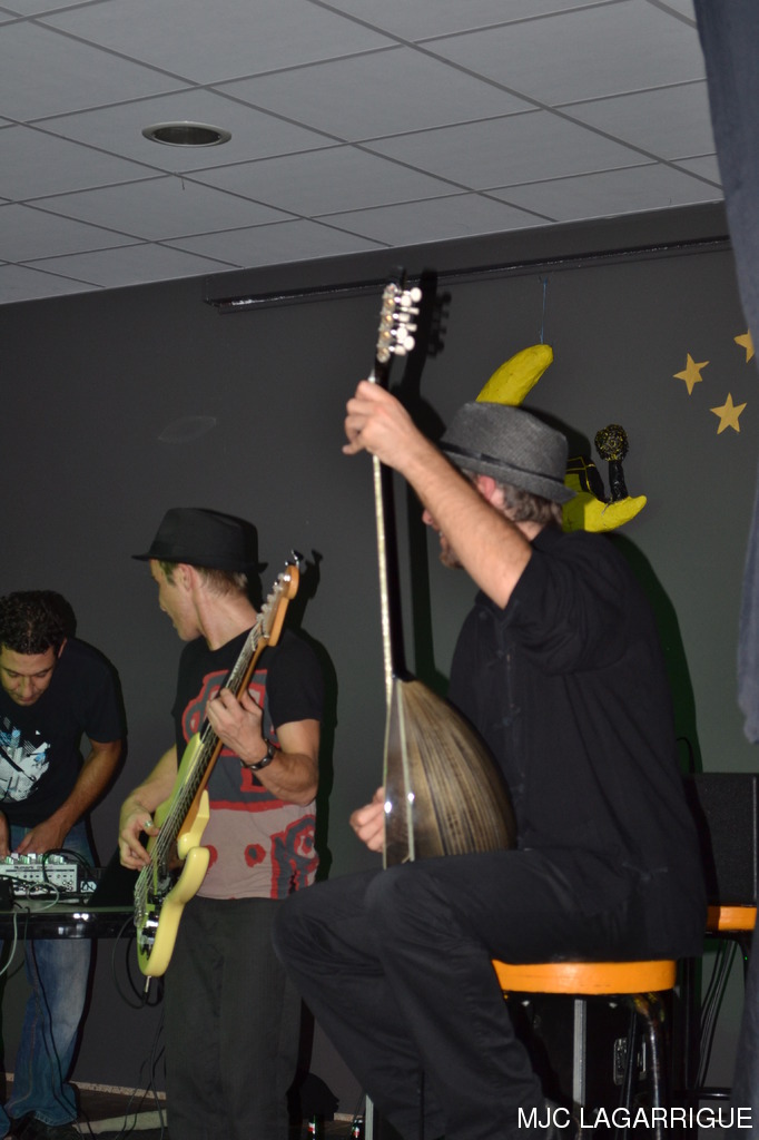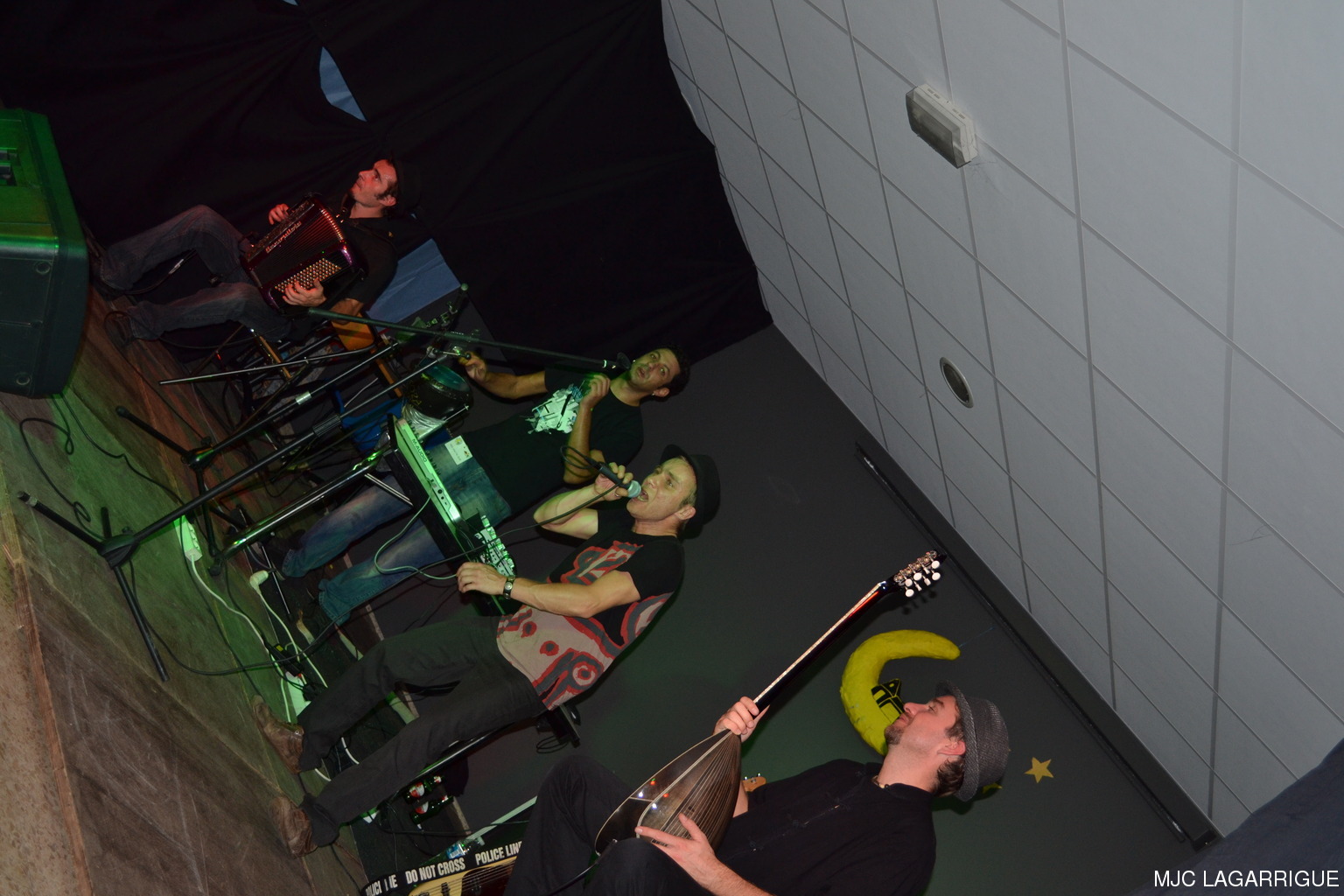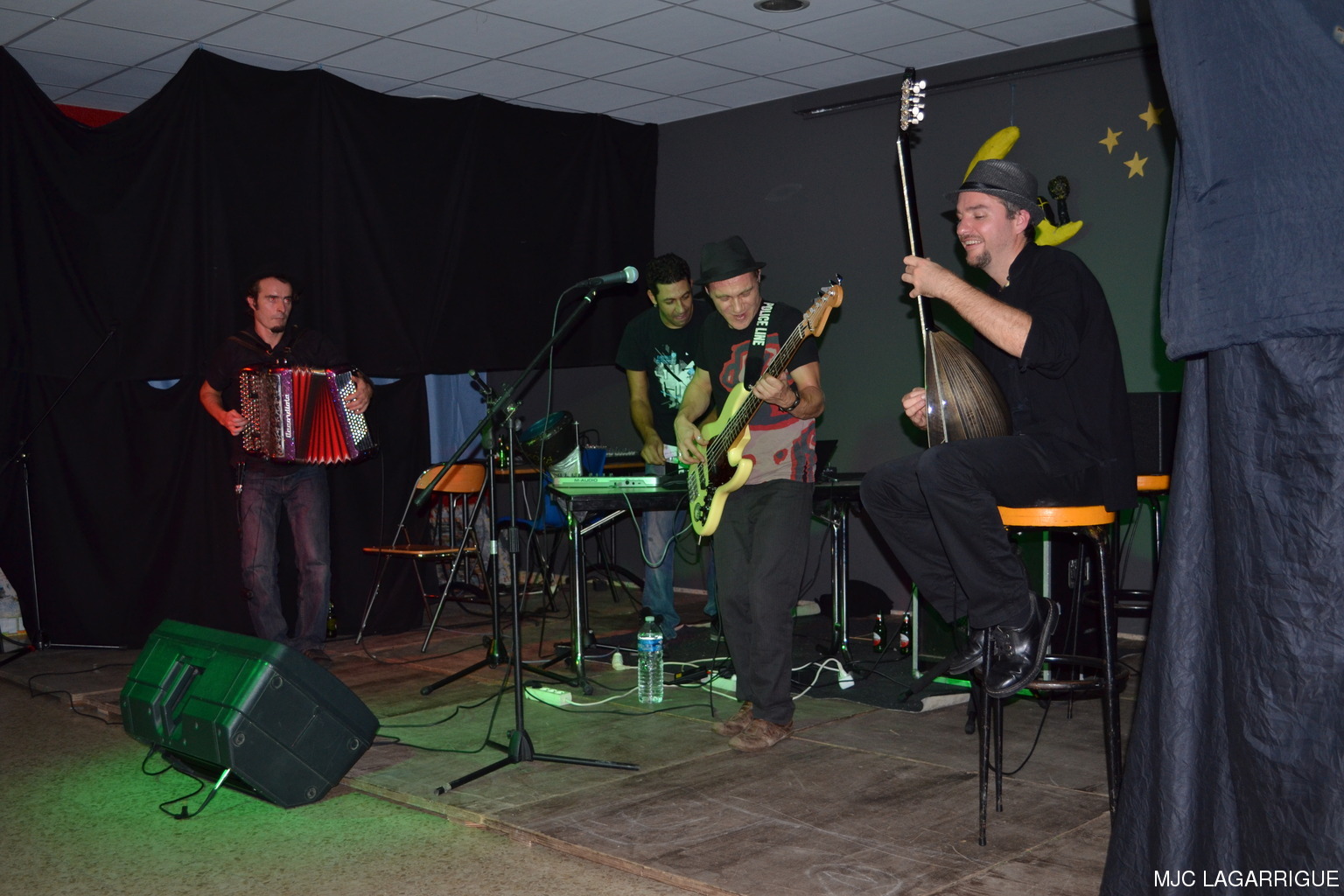 Une pléiade d'artistes pour une grande soirée à la MJC La Lune derrière les granges, association castraise, culturelle et itinérante nous a convie à venir nous laisser surprendre et émerveiller le samedi 20 octobre, à la MJC, au cours d'une soirée alléchante et éclectique. La programmation dans l'ordre à partir de 19h30 : Christian Duval «Contes et fariboles» : tour à tour narrateur, cabotin, confident, ce conteur doté d'un goût particulier pour les situations absurdes mettra en scène des personnages en prise avec eux-mêmes. Appuyé sur des contes empruntés au patrimoine et librement adaptés par ses soins, il les découd puis tricote un paysage où vont et viennent de petits nuages… La partie musicale a débuté avec Laura (British Pop). Cette jeune et talentueuse compositrice et son grain de voix surprenant, dans un univers brit pop et aux influences électro, est venu nous faire voyager en ce début de soirée avec la participation improvisée de Florian Bossuwe. La soirée s'est poursuivi avec «Black Hills» (folk rock) : pour le paysage, on pouvait s' imaginer à l'Ouest de l'Amérique. Un vent de folie aux couleurs festives Pour la bande-son, la voix rauque et brûlante du chanteur de Black Hills accompagnée d'une guitare folk sentant bon le Texas et de musiciens à l'énergie débordante et le tout avec énergie pour obtenir un grunge'n folk puissant et entêtant. Le «Slivo Electric Klub», lui, nous a proposé un style innovant aux couleurs chatoyantes. Ces Toulousains produisent un balkan beat issu de l'union fertile entre musique organique (accordéon, contrebasse, bouzouki) et électronique. Et tout au long de la soirée, La Lune vous a invité à venir buller dans l'univers du «Neuvième Art» autour d'une palette de dessins rigolos et de planches de BDde l'illustrateur BD Christophe Ballarin. . Un cocktail de gags enfantins, de sublimes créatures de rêves et des caricatures de personnalités célèbres sont encore à découvrir sur les murs de la MJC jusqu'à la fin du mois d'octobre.Christophe Ballarin. RÉCUPÉRATION DES PHOTOS 1. Positionnez le pointeur de la souris sur la photo choisie et cliquer dessus pour agrandir. 2. Activez le bouton droit de la souris, un menu contextuel s'ouvre. 3. Activez dans ce menu le choix "Save Image As..." ou "Enregistrer l'image sous..." 4. Une fenêtre s'ouvre et vous y indiquerez le lecteur (disque dur, clé USB) et le répertoire où vous souhaitez que la photo soit enregistrée. Vous pouvez aussi faire défiler les photos sous forme de diaporama après agrandissement