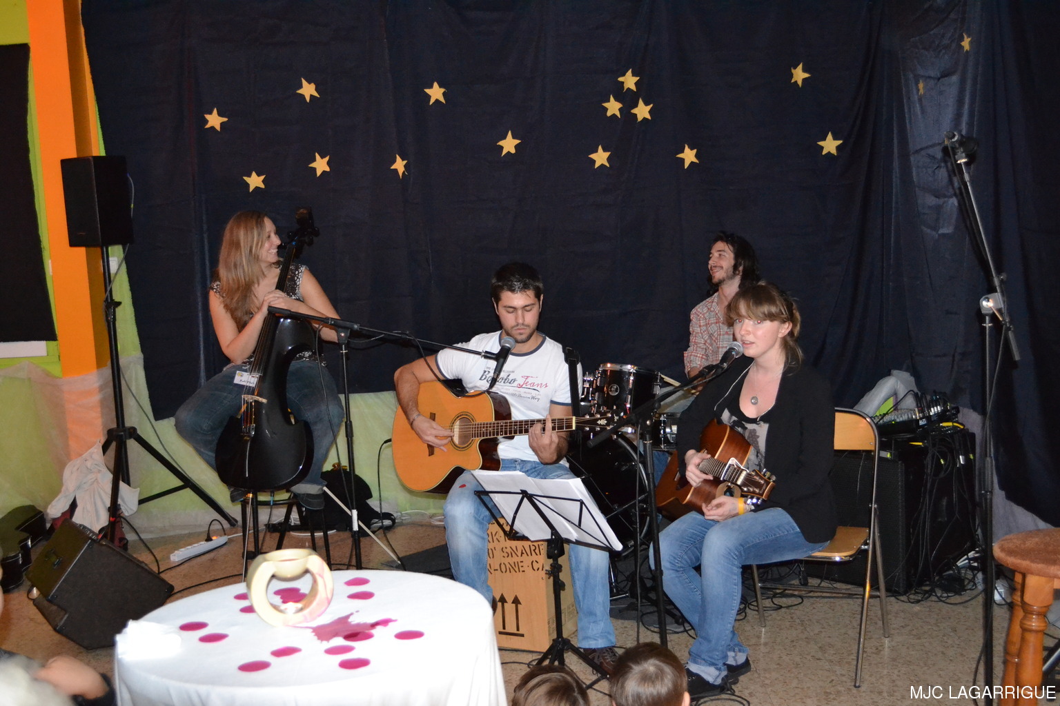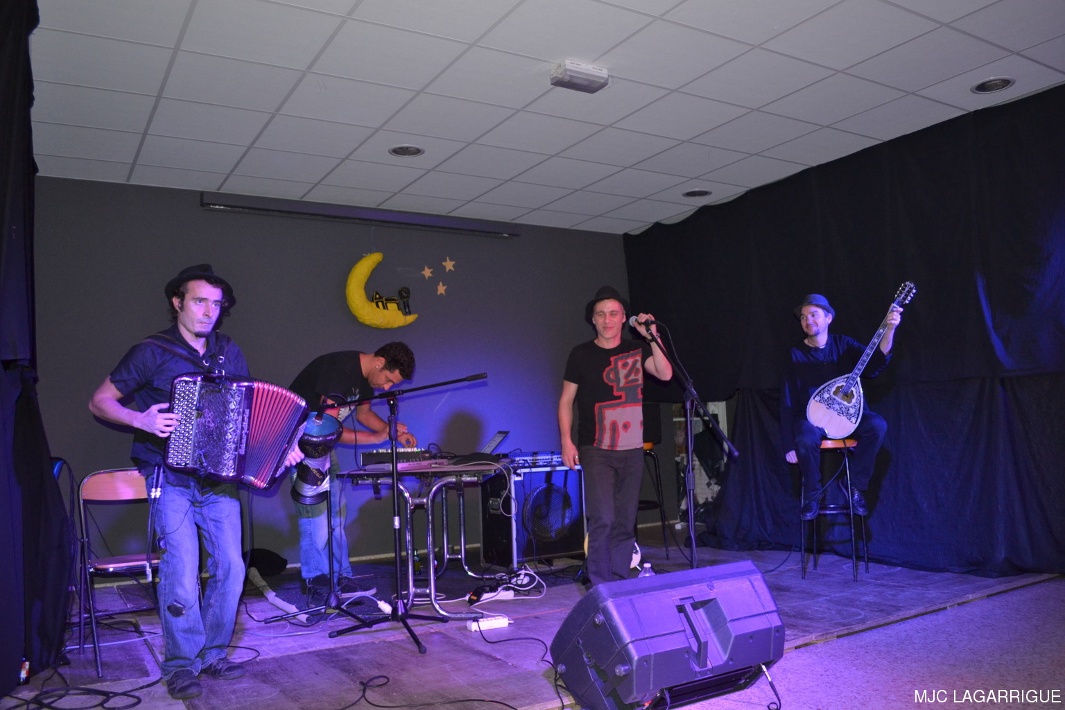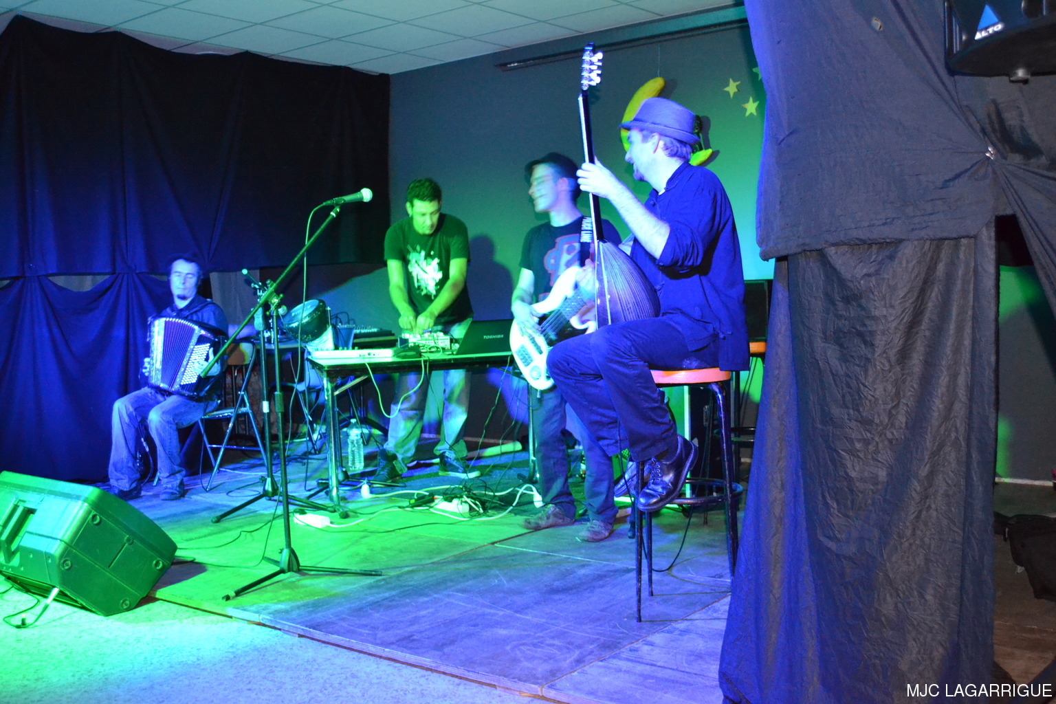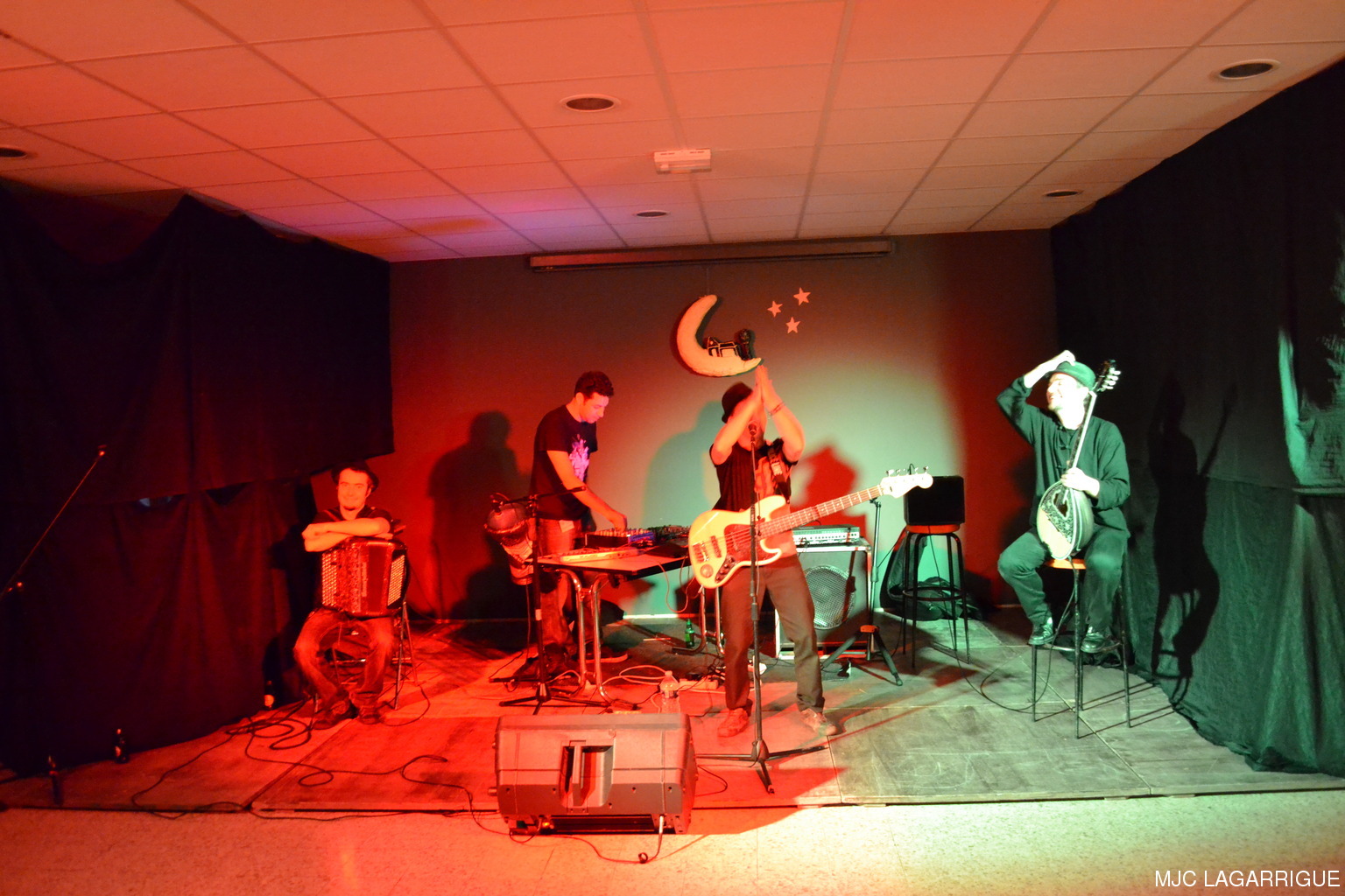 Une pléiade d'artistes pour une grande soirée à la MJC La Lune derrière les granges, association castraise, culturelle et itinérante nous a convie à venir nous laisser surprendre et émerveiller le samedi 20 octobre, à la MJC, au cours d'une soirée alléchante et éclectique. La programmation dans l'ordre à partir de 19h30 : Christian Duval «Contes et fariboles» : tour à tour narrateur, cabotin, confident, ce conteur doté d'un goût particulier pour les situations absurdes mettra en scène des personnages en prise avec eux-mêmes. Appuyé sur des contes empruntés au patrimoine et librement adaptés par ses soins, il les découd puis tricote un paysage où vont et viennent de petits nuages… La partie musicale a débuté avec Laura (British Pop). Cette jeune et talentueuse compositrice et son grain de voix surprenant, dans un univers brit pop et aux influences électro, est venu nous faire voyager en ce début de soirée avec la participation improvisée de Florian Bossuwe. La soirée s'est poursuivi avec «Black Hills» (folk rock) : pour le paysage, on pouvait s' imaginer à l'Ouest de l'Amérique. Un vent de folie aux couleurs festives Pour la bande-son, la voix rauque et brûlante du chanteur de Black Hills accompagnée d'une guitare folk sentant bon le Texas et de musiciens à l'énergie débordante et le tout avec énergie pour obtenir un grunge'n folk puissant et entêtant. Le «Slivo Electric Klub», lui, nous a proposé un style innovant aux couleurs chatoyantes. Ces Toulousains produisent un balkan beat issu de l'union fertile entre musique organique (accordéon, contrebasse, bouzouki) et électronique. Et tout au long de la soirée, La Lune vous a invité à venir buller dans l'univers du «Neuvième Art» autour d'une palette de dessins rigolos et de planches de BDde l'illustrateur BD Christophe Ballarin. . Un cocktail de gags enfantins, de sublimes créatures de rêves et des caricatures de personnalités célèbres sont encore à découvrir sur les murs de la MJC jusqu'à la fin du mois d'octobre.Christophe Ballarin. RÉCUPÉRATION DES PHOTOS 1. Positionnez le pointeur de la souris sur la photo choisie et cliquer dessus pour agrandir. 2. Activez le bouton droit de la souris, un menu contextuel s'ouvre. 3. Activez dans ce menu le choix "Save Image As..." ou "Enregistrer l'image sous..." 4. Une fenêtre s'ouvre et vous y indiquerez le lecteur (disque dur, clé USB) et le répertoire où vous souhaitez que la photo soit enregistrée. Vous pouvez aussi faire défiler les photos sous forme de diaporama après agrandissement