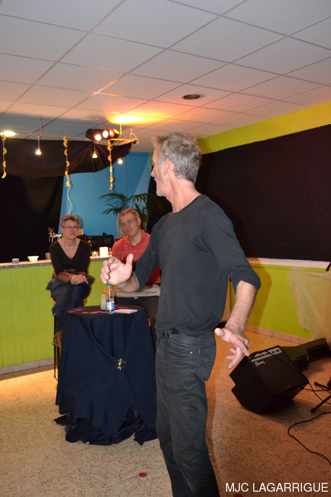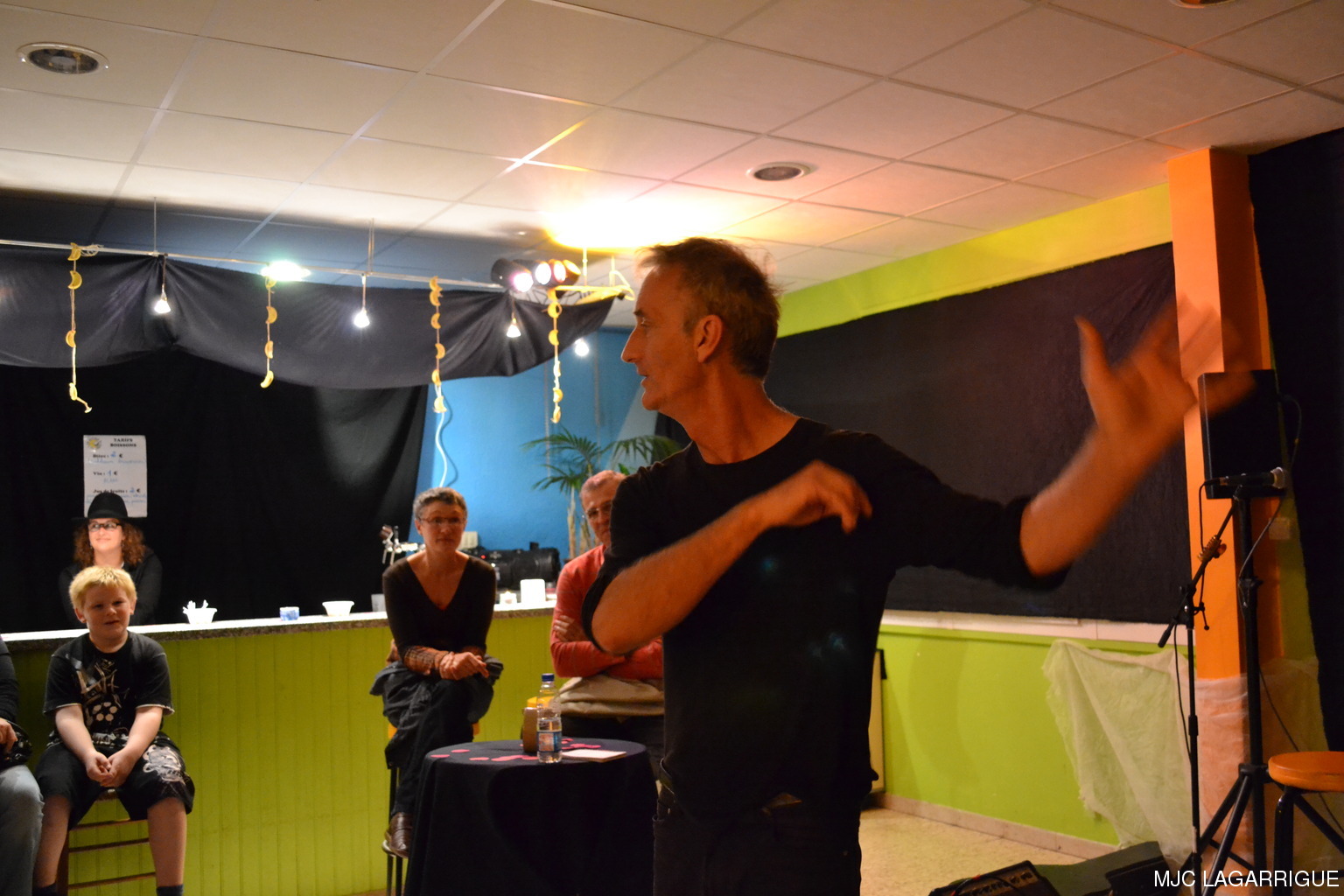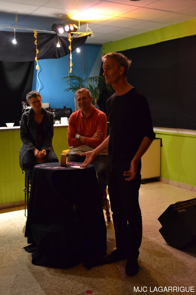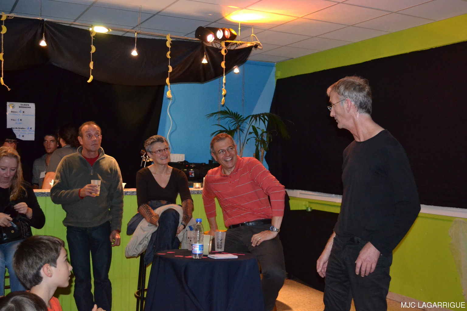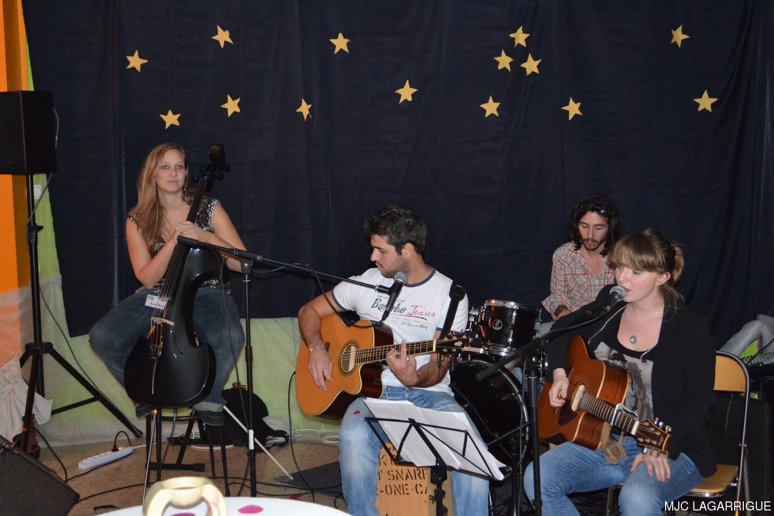 Une pléiade d'artistes pour une grande soirée à la MJC La Lune derrière les granges, association castraise, culturelle et itinérante nous a convie à venir nous laisser surprendre et émerveiller le samedi 20 octobre, à la MJC, au cours d'une soirée alléchante et éclectique. La programmation dans l'ordre à partir de 19h30 : Christian Duval «Contes et fariboles» : tour à tour narrateur, cabotin, confident, ce conteur doté d'un goût particulier pour les situations absurdes mettra en scène des personnages en prise avec eux-mêmes. Appuyé sur des contes empruntés au patrimoine et librement adaptés par ses soins, il les découd puis tricote un paysage où vont et viennent de petits nuages… La partie musicale a débuté avec Laura (British Pop). Cette jeune et talentueuse compositrice et son grain de voix surprenant, dans un univers brit pop et aux influences électro, est venu nous faire voyager en ce début de soirée avec la participation improvisée de Florian Bossuwe. La soirée s'est poursuivi avec «Black Hills» (folk rock) : pour le paysage, on pouvait s' imaginer à l'Ouest de l'Amérique. Un vent de folie aux couleurs festives Pour la bande-son, la voix rauque et brûlante du chanteur de Black Hills accompagnée d'une guitare folk sentant bon le Texas et de musiciens à l'énergie débordante et le tout avec énergie pour obtenir un grunge'n folk puissant et entêtant. Le «Slivo Electric Klub», lui, nous a proposé un style innovant aux couleurs chatoyantes. Ces Toulousains produisent un balkan beat issu de l'union fertile entre musique organique (accordéon, contrebasse, bouzouki) et électronique. Et tout au long de la soirée, La Lune vous a invité à venir buller dans l'univers du «Neuvième Art» autour d'une palette de dessins rigolos et de planches de BDde l'illustrateur BD Christophe Ballarin. . Un cocktail de gags enfantins, de sublimes créatures de rêves et des caricatures de personnalités célèbres sont encore à découvrir sur les murs de la MJC jusqu'à la fin du mois d'octobre.Christophe Ballarin. RÉCUPÉRATION DES PHOTOS 1. Positionnez le pointeur de la souris sur la photo choisie et cliquer dessus pour agrandir. 2. Activez le bouton droit de la souris, un menu contextuel s'ouvre. 3. Activez dans ce menu le choix "Save Image As..." ou "Enregistrer l'image sous..." 4. Une fenêtre s'ouvre et vous y indiquerez le lecteur (disque dur, clé USB) et le répertoire où vous souhaitez que la photo soit enregistrée. Vous pouvez aussi faire défiler les photos sous forme de diaporama après agrandissement