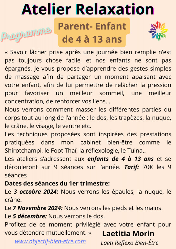 Atelier Réflexologie Parent/enfant (Nouveauté) 2024*2025